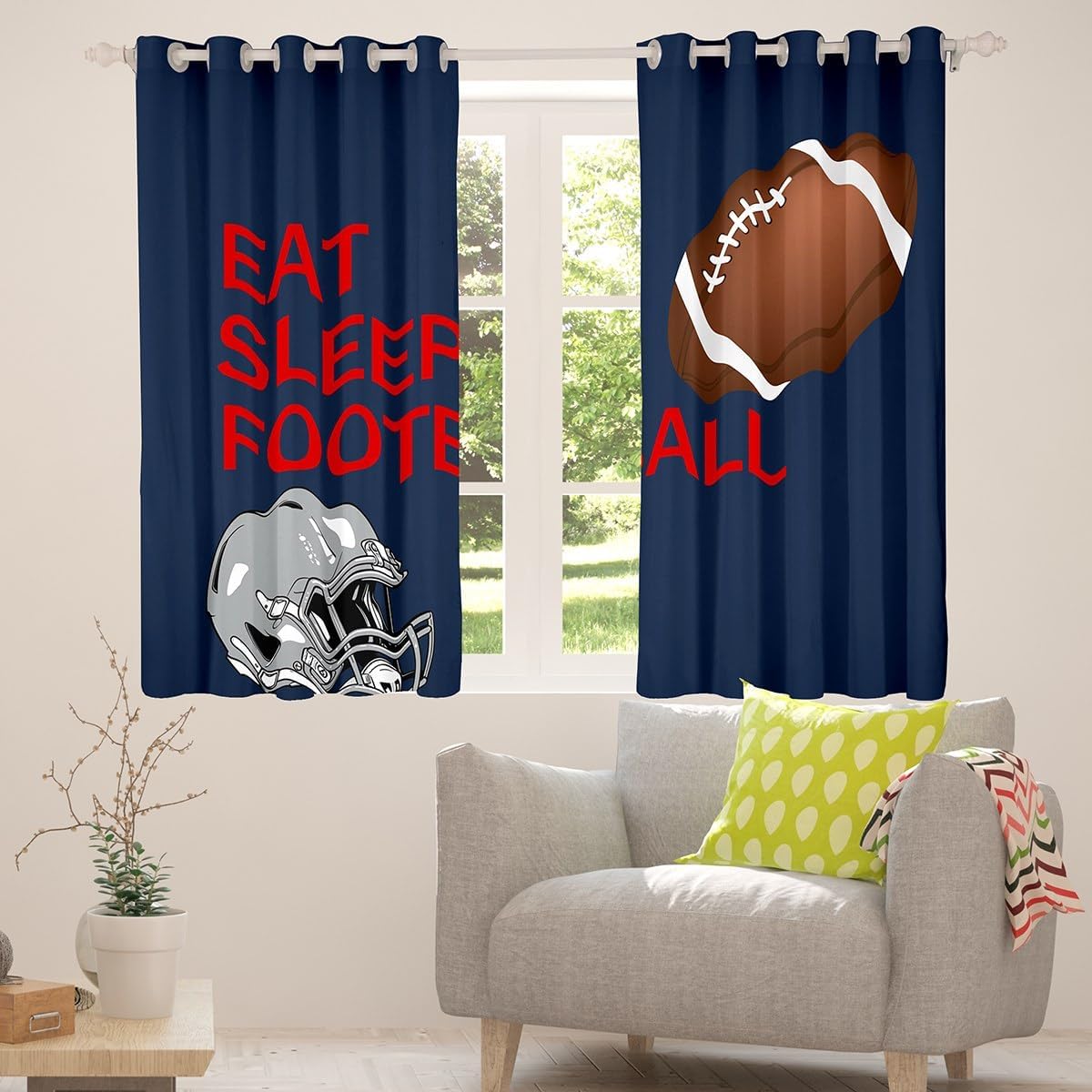 Feelyou Football Blackout Curtain Kids Boys Girls Rugby Sports Games Darkening Curtain (2 Panels, 42x90 Inch) Football Player Curtain for Bedroom Decor Navy Blue Football Gift Window Treatments