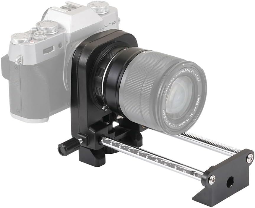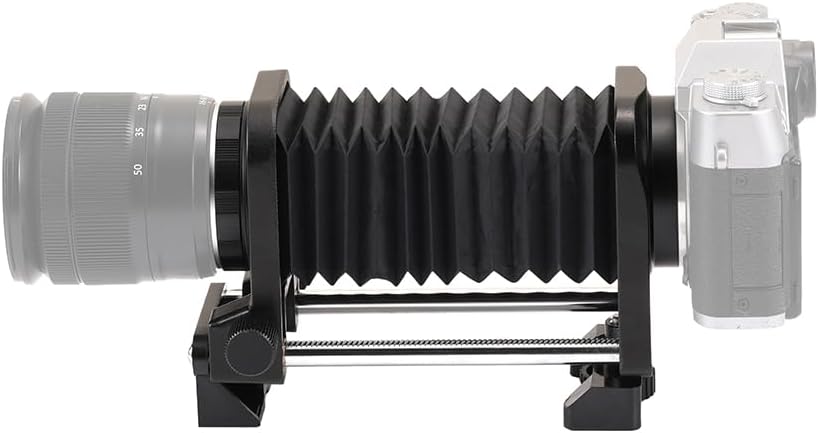 FEICHAO Macro Bellows Camera Lens Support Holder Extension Tube Compatible with FX Lens Description Macro Len Bellow is an accessory connected between the camera body and the camera lens, its role is to pull the distance between the main point of the lens and the plane of focus, in order to achieve the purpose of magnifying photography. Material: Aluminum alloy + Plastic