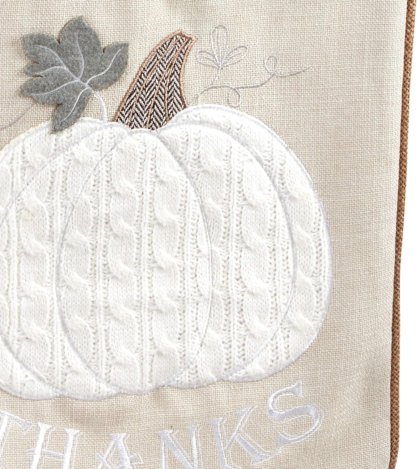 Spice up your autumn décor with this appliqué knit pumpkin jute embroidered table runner. Featuring neutral tones and a light print, this long table runner is very easy to pair and blend. It also gives a whimsical note to your tabletop. Design intended for top side only, solid color at the back. Pair this design with dark or bright furniture. PRODUCT DETAILS :Dimensions: 16 x 72 inchesMaterial: polyester Care Instructions: cold hand wash, cool iron; do not bleachOur Philosophy:At Fennco Styles you can shop a carefully selected range of home, lifestyle and gift products. We believe our homes should be reflections of the journeys we take. Our personal spaces deserve designs with a soul, a story, and a purpose. Our lifestyle brand offers inspired living through high-quality products, exclusive designs, and timeless style. We aim to source ethically, looking for products that are made from sustainable materials and designed to last and seeking out Makers that are conscious of their impact on the environment.Click Add To Cart to order your Brown gives thanks pumpkin table runner and curate a contemporary and personalized aesthetic in your home, today!