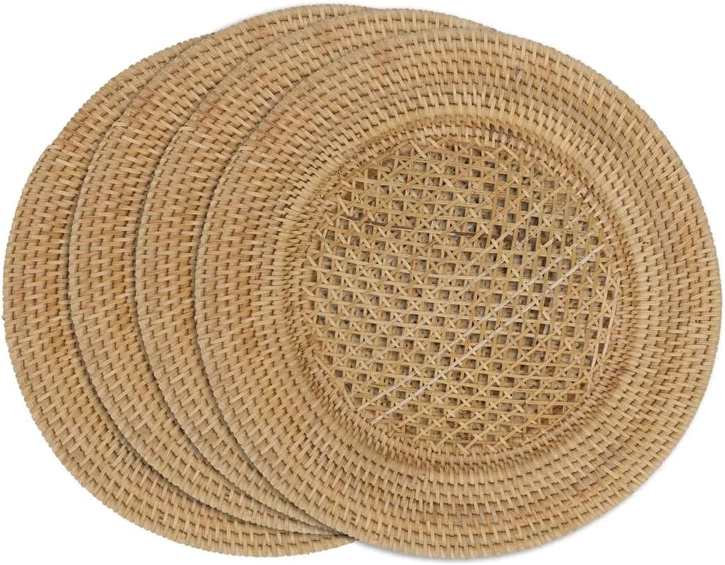 Fennco Styles Handmade Rattan Decorative Charger Plates, Set of 4 Add a touch of texture and classic design to your tabletop with the contemporary Rattan Charger Plates. This natural decorative charger features a simple woven design creating a farmhouse or modern rustic look that will easily blend with your existing decor. These round charger plates are the perfect choice to protecting your dining table from a hot plate or saucy spill, or just adding a decorative touch beneath your dinnerware. PRODUCT DETAILS :Dimensions: 13 inches roundMaterial: 100% rattan Care Instructions: cool machine wash, delicate cycle. do not bleach, tumble dry low. medium iron.Our Philosophy:At Fennco Styles you can shop a carefully selected range of home, lifestyle and gift products. We believe our homes should be reflections of the journeys we take. Our personal spaces deserve designs with a soul, a story, and a purpose. Our lifestyle brand offers inspired living through high-quality products, exclusive designs, and timeless style. We aim to source ethically, looking for products that are made from sustainable materials and designed to last and seeking out Makers that are conscious of their impact on the environment.