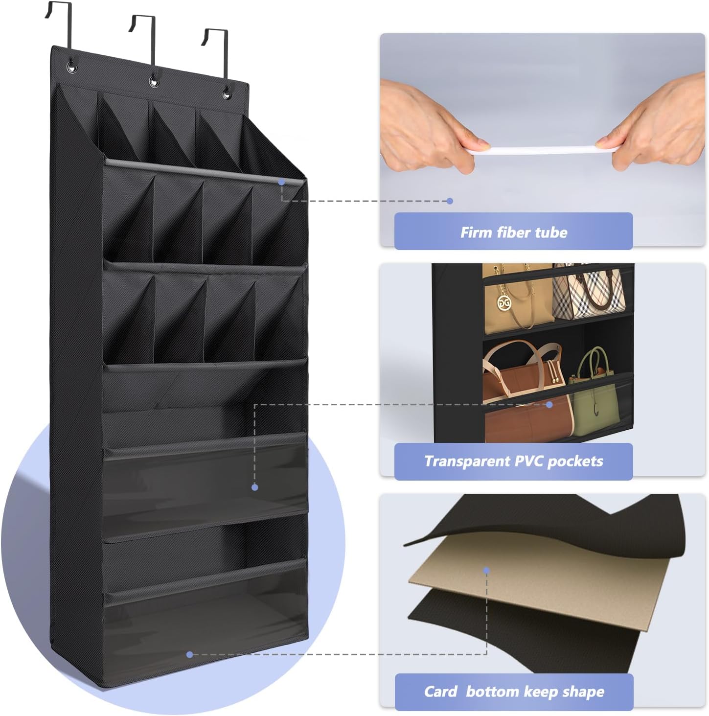FENTEC 1 Pack Over-the-Door-Shoe-Organizer and 3 Pack Sturdy Metal Over The Door Hangers Hooks