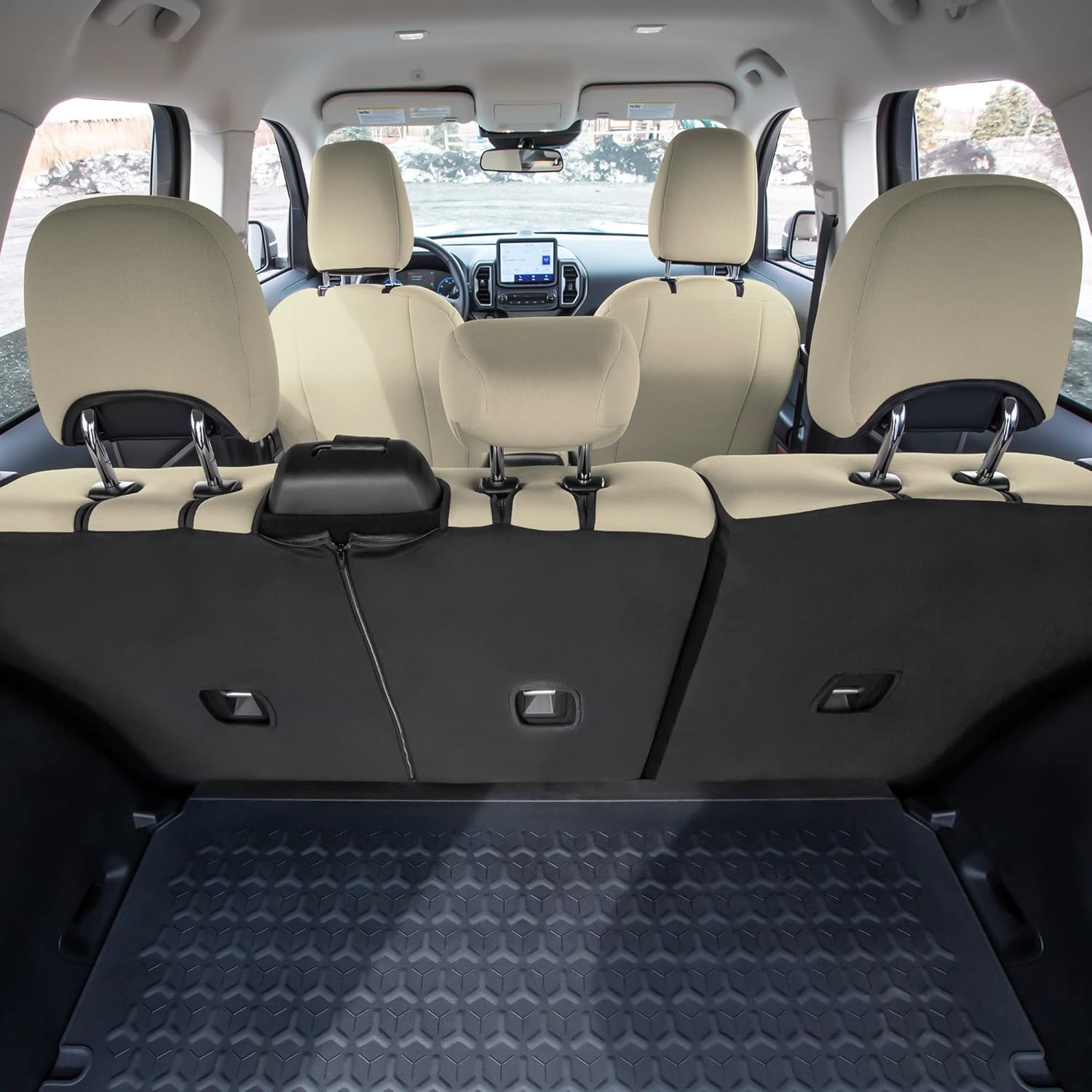 | Included Components | 2 low-back front bucket seat covers, 2 separate headrest covers, console cover |