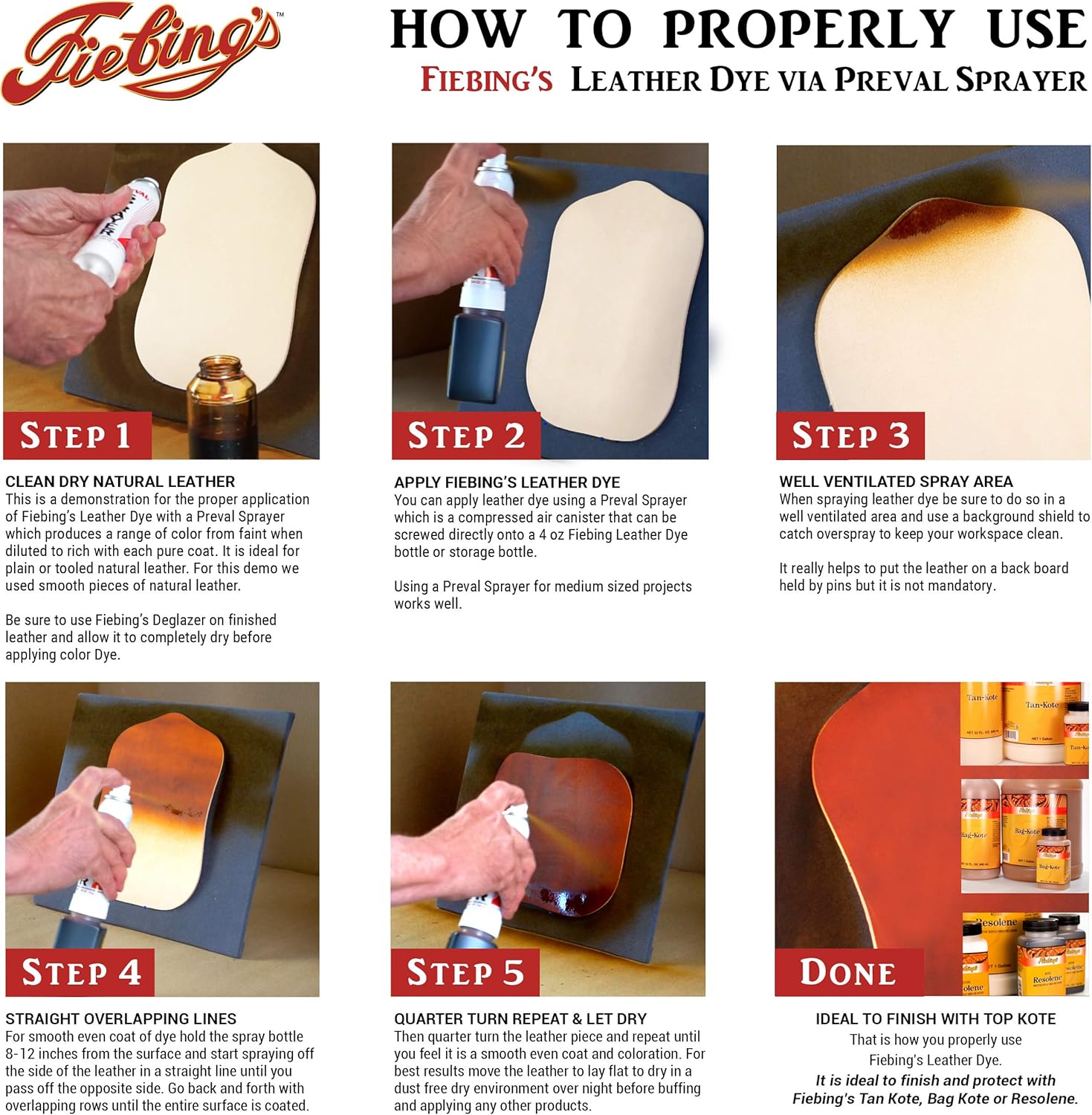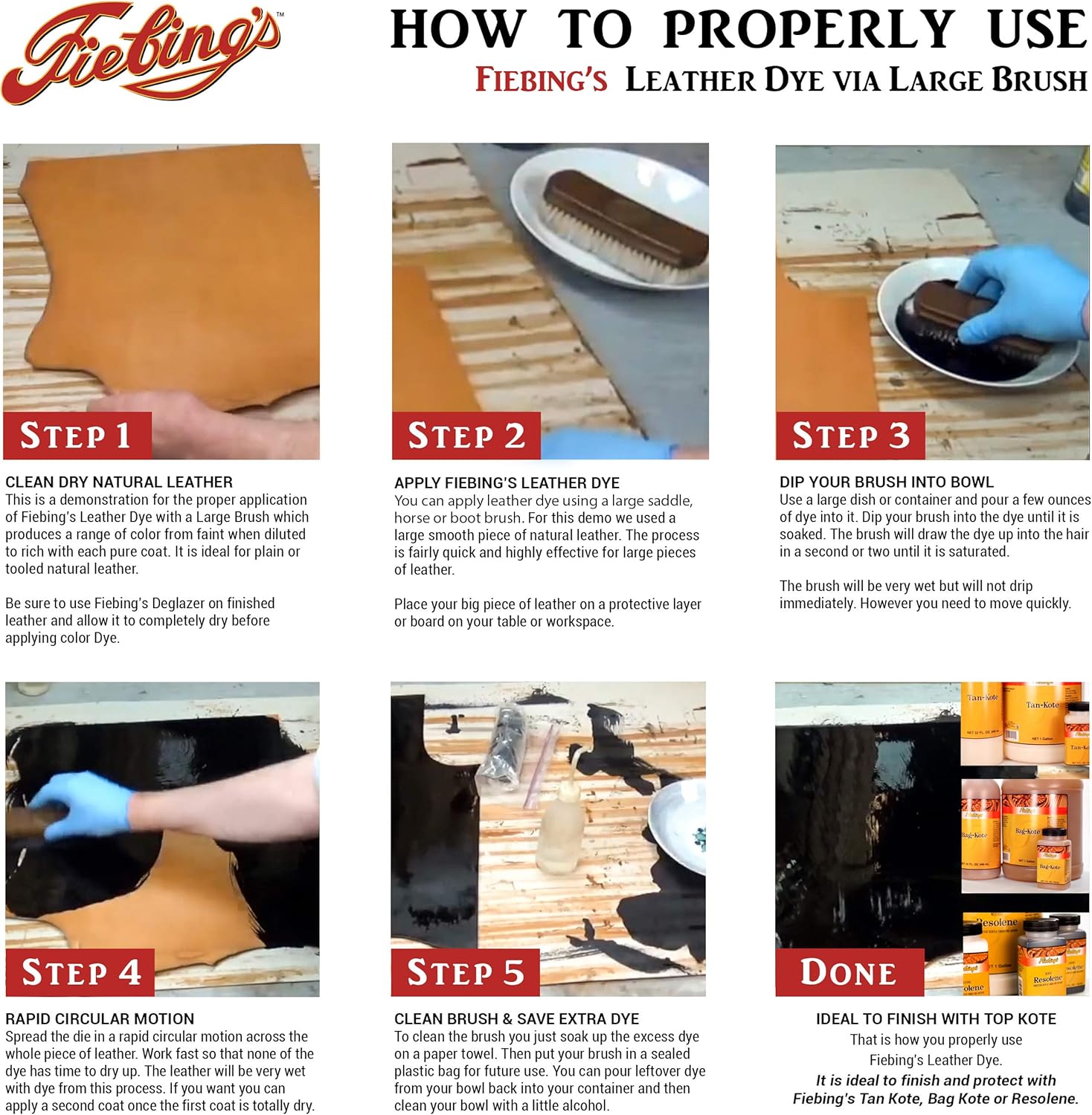 • Most recognized penetrating, alcohol-based leather dye in the world