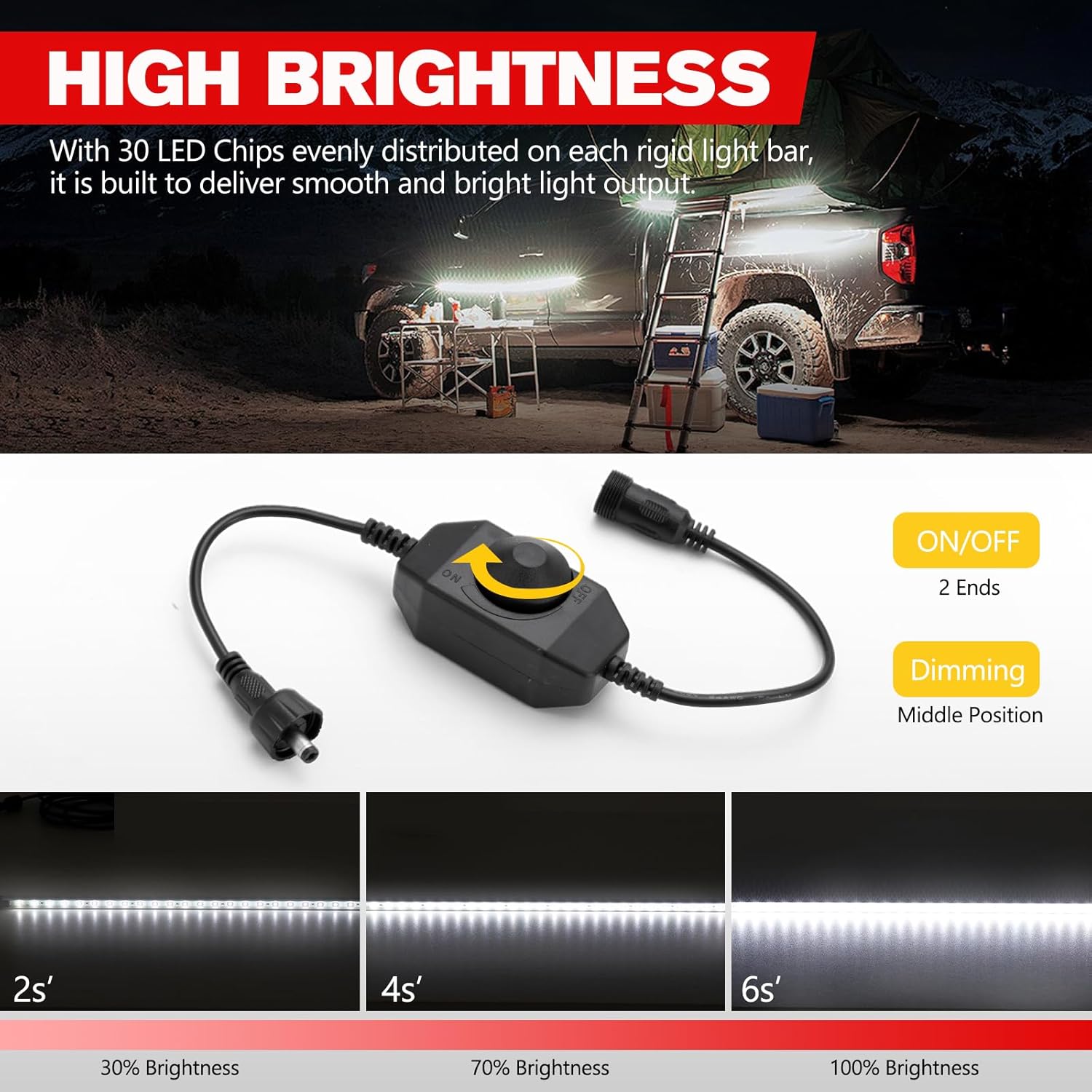 1.FIERYRED 2PCS 12V Dimmable LED Camping Light Bars IP67 Waterproof & Dustproof, Built-in Magnets & Velcro Mount, Aluminum Lighting Kit for Tent, RV, Awning, Roof Rack, Vehicle, White 2.FIERYRED 12V Interior Light Bar Kit, Dimmable Camping Lights, Weatherproof IP67, Aluminum Magnetic Mount with Dimmer Switch, Portable Lights for Camping Tent Awning RV Car Trailer Boat (4 Pcs, Amber)