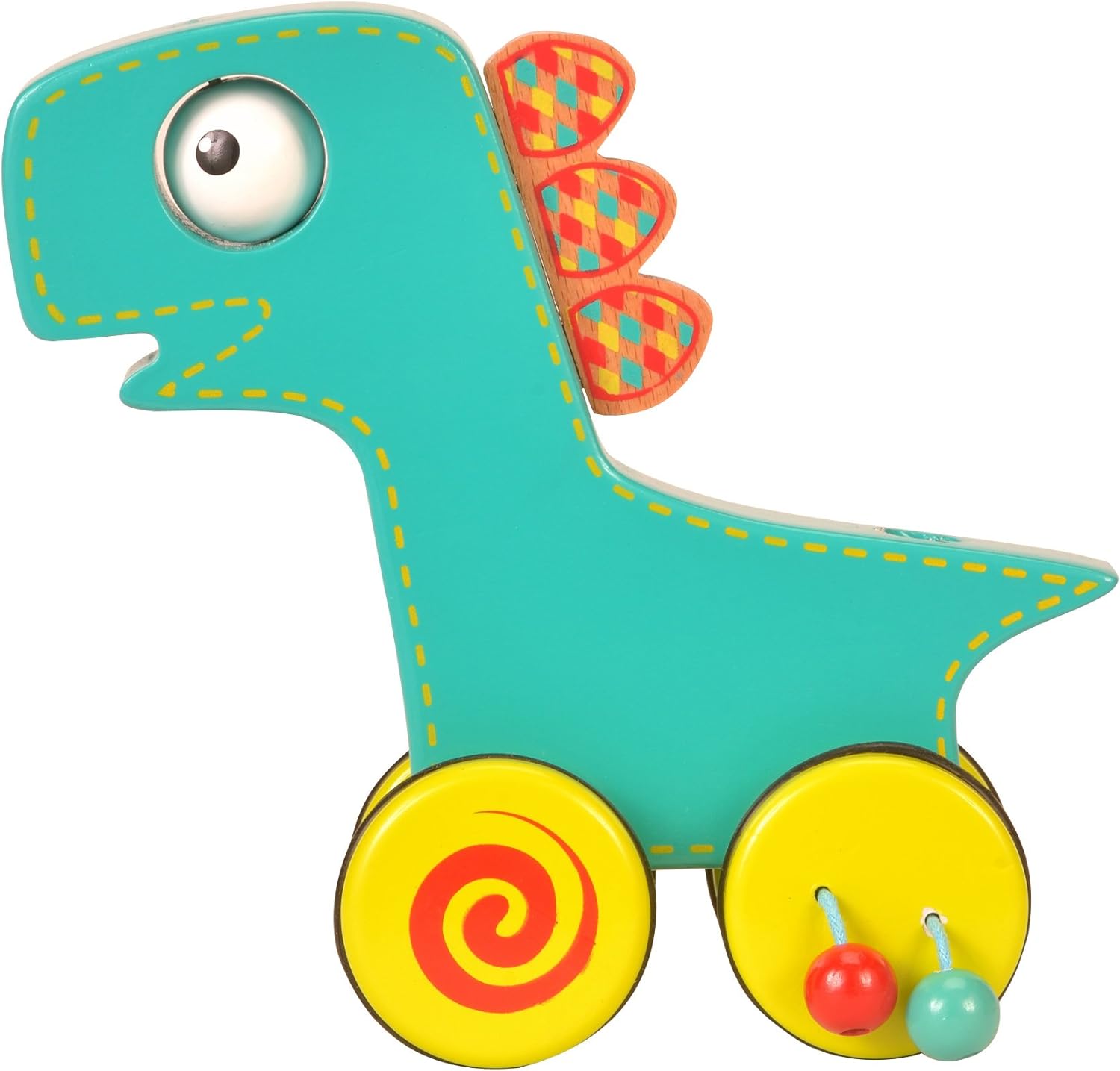For walking, for crawling - a perfect developmental toy.Colourful, sturdy and beautifully crafted, the Push N Roll Along toys are designed to be the perfect play toy for small children supporting and encouraging them as they develop from sitting to crawling to walking.It comes with a detachable wooden rod that inserts easily into the back of the toy.The Push N Roll toy can be rolled (sitting or crawling) or pushed (walking) via the wooden rod with an easy-to-grip ball shaped handle.This 2-in-1 toy with its moving parts and sounds will keep little ones greatly entertained and they will enjoy the clacking sound of the wheels as the fun spiral painted wheels roll around the floor, they can even spin the rolling eyes for even more fun.The bright colours and attention to detail are sure to make this toy a much-loved addition to any toy collection while helping younger children to improve fine and gross motor skills as well as becoming familiar with new sounds, shapes and animals.