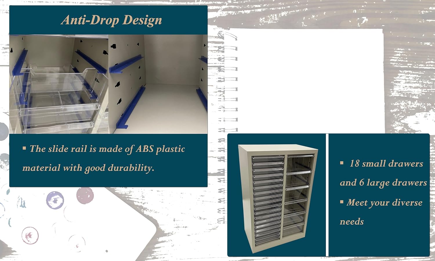 Parameters: The Load Capacity of a Single Drawer:4.4lbs The Size of Small Drawer: 12.8*9.25*1.57 inch The Size of Large Drawer: 12.8*9.25*4.7 inch The Size of File Cabinet: 21.65*13.39*34.25 inch Item Weight(Not Including the Packaging): 35.05lbs Details: 1. PS(Polystyrene) is a thermoplastic with good transparency, durability and electrical insulation. 2. ABS plastic is a terpolymer of acrylonitrile (A)-butadiene (B)-styrene (S). It combines the properties of the three components. It is a thermoplastic with high strength, impact resistance, oil resistance and good durability.
