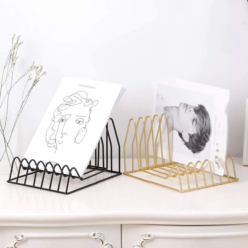 Document Rack Display Storage,Desktop File Sorter Organizer,for A4 Paper, Magazine, Paperwork and DocumentSpecification:Material: MetalColour:Black , GoldFeatures:Innovative design with beautiful appearance on your desk1*File holderWe ingeniously utilize space and multi-functional storage space to create a workspace that maximizes your work efficiency. A tidy working environment can improve your mood, enhance work efficiency and ultimately increase your sense of happiness