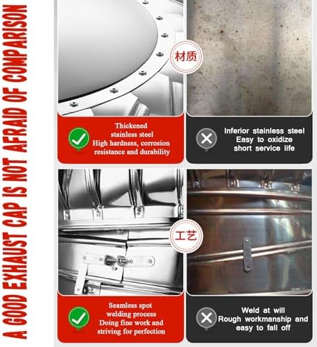 .The stainless steel rotating chimney cover adopts arc-shaped fan blades and encrypted blades to ensure that rainwater will not invade during working conditions. The exhaust efficiency is high and you can drive easily. Protect your chimney from rain and moistureCan improve ventilation in dry toilets, storage rooms, bathrooms and other places where ventilation is needed.Advantages of roof ventilation fans:No assembly required, easy to install.No electricity required, saving energy.Improve the air in your fireplace.Keep the room well ventilated.Increase exhaust value.Prevent sparks from flying.Protect your chimney from rain, snow and other external influences.Withstands temperatures up to 450°C.Product Name: Roof VentMaterial: 304 stainless steelInstallation method: clamp installation/punching installationKind tips.Please pay attention when unpacking and installing. It is recommended to wear gloves to avoid scratches.There is a slight error in the size due to manual measurement, please refer to the actual product, thank you for your understanding.