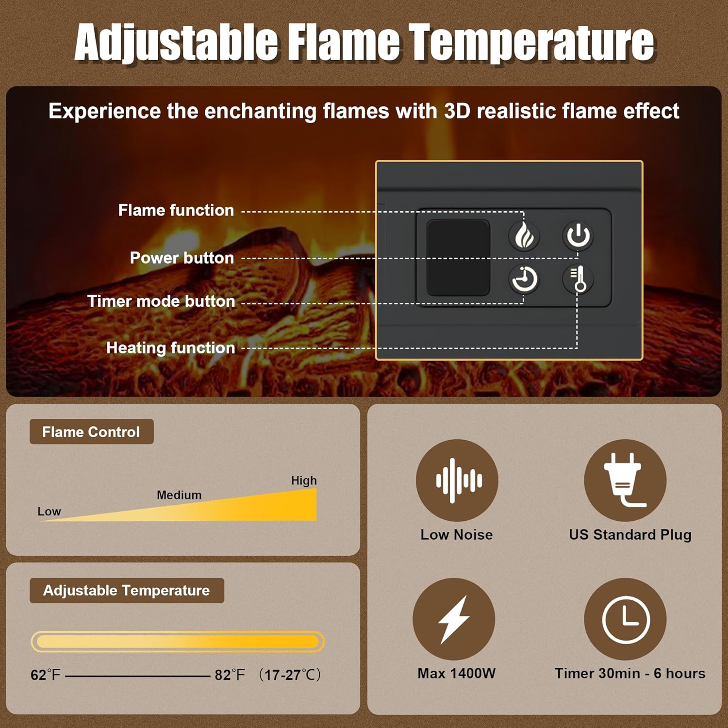 | Additional Features | Flame Effect, Led Flame, Timer, Adjustable Thermostat, Remote Control, Overheating Protection |