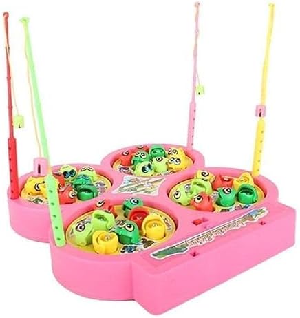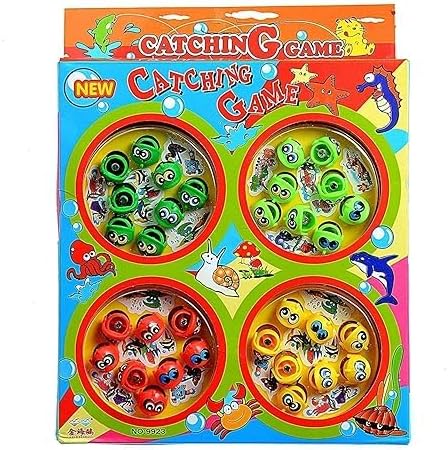 Catch the most fish with fishing rods from rotating fishpond! The fish open and close their mouth while the fishing board spins. Practice fishing skills with this classic fishing game Multiplayer fast-action fishing game for 2-4 players, Includes fishing pond double-layer game board, 4 fishing rod and 32 fish. Enjoyable game for kids & toddlers Fishing catching game with music which helps younger children develop hand-eye coordination, Made of BPA-free, high-quality, safe, and non-toxic materials Best gift for kids. Magnetic fishing rod - pick fishes of same or different color as per game rule rotating battery operated, Requires 2 x 3 ‘AA’ batteries (Not included). Recommended for ages 3+ Fishes keep mouth open for small time - thus challenging difficulty level to catch rotating fishes whose mouth keeps closing and opening, please remove the battery end of the game