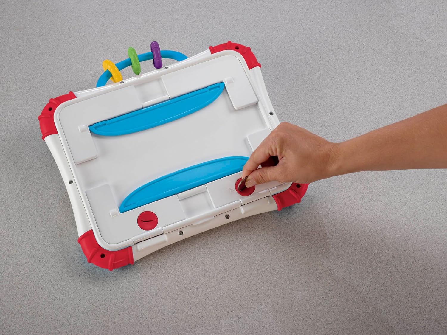 Product Description Let your little one enjoy baby-appropriate apps in a protected case that's decorated with letters and numbers! This sturdy case and clear film will protect your iPad device from dribbles, drool, sticky fingers, teething and unwanted pressing of the home button. For variety, your little one can use it flat, set up the easel on back, or flip out both legs for a rocker base! A textured handle and rattle beads make it fun, even without your device. Download Fisher-Price Laugh & Learn apps, available on the App Store for lots of learning fun. From the Manufacturer The Apptivity Case for iPad lets babies enjoy their very own applications in a case that's made just right for baby. Simply place the Apple device into the case, twist the locks, and the electronic is protected from baby's dribbles and drool. The durable, rubber case holds the device behind a clear film to project the screen. Offers three ways to play: roly-poly based, easel, or place. Download free Fisher-Price Laugh and Learn applications from iTunes. Babies love to learn when their interactive touches control the action. And this case is the perfect way to let baby be in control while protecting electronic components. Apple Products not included. Compatible with iPad 1, iPad 2 and iPad 3rd generation.