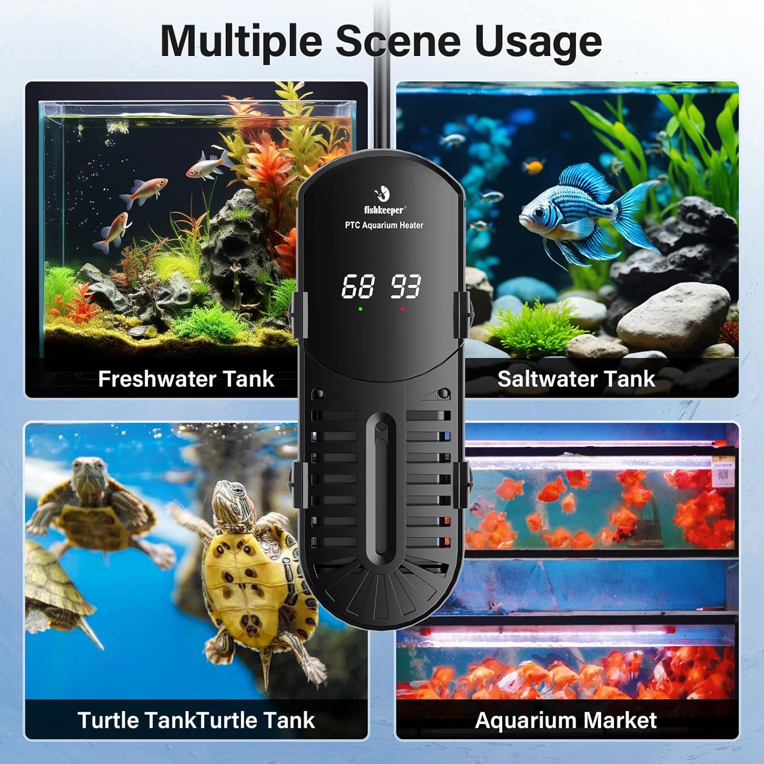 • Efficient Heating, Energy Saving: fishkeeper aquarium heater utilizes electromagnetic induction to generate heat internally, resulting in minimal energy loss. With an efficiency of over 90%, it provides rapid and efficient heating. Moreover, when the real-time temperature is close to the preset temperature, the small tank heater automatically enters an energy-saving mode, conserving energy while maintaining optimal heating conditions
