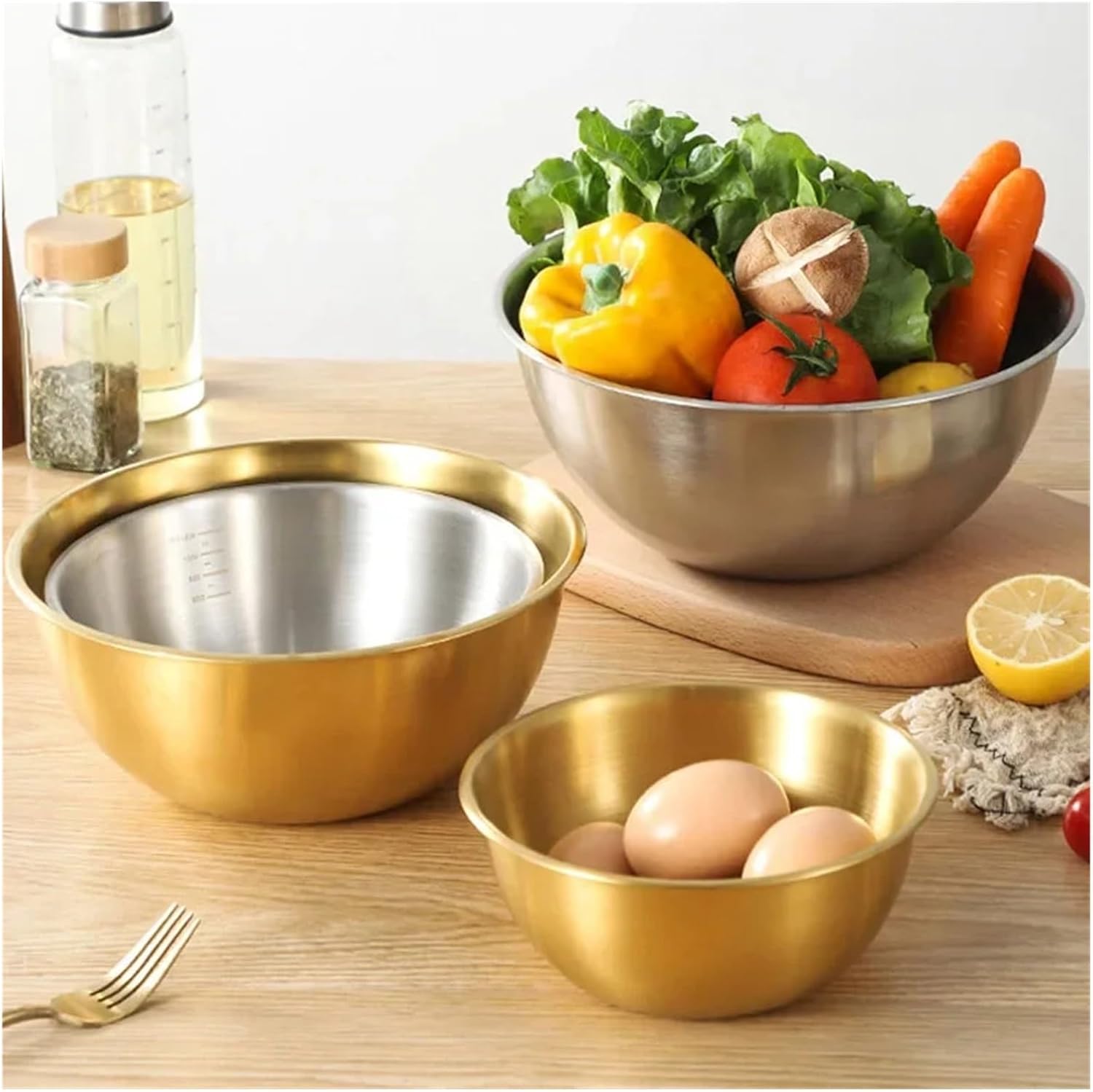 Upgrade your kitchen with our Stainless Steel Mixing Bowl Set, designed for versatility and durability. This premium salad basin is for mixing salads, kneading dough, and baking. Crafted from stainless steel, it resists rust and corrosion, ensuring long-lasting use. The smooth, polished interior makes cleaning a breeze, and it's dishwasher safe for your convenience. With its deep design, you can mix ingredients without worrying about spills. Lightweight yet sturdy, this mixing bowl set is a must-have for both home cooks and professional chefs. Enhance your culinary experience today!