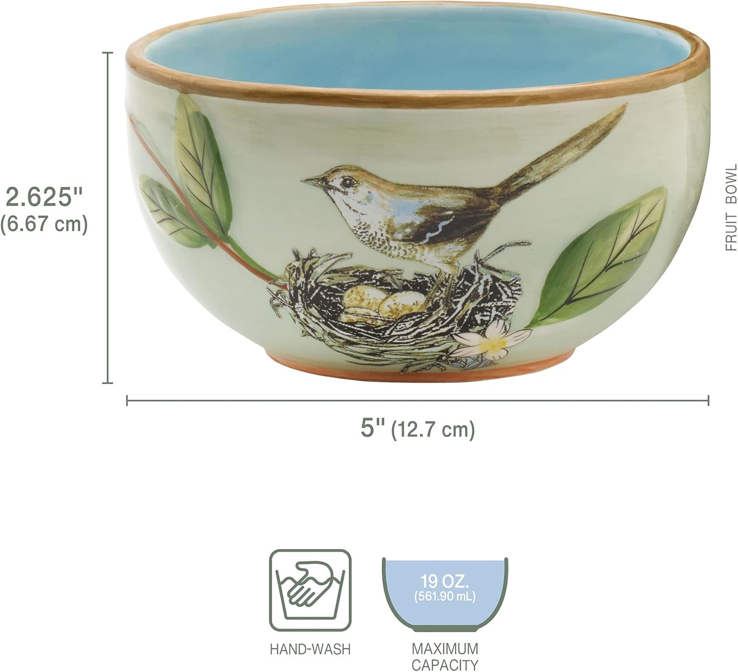 • HAND-PAINTED ACCENTS: Colorful birds, butterflies and delicate floral accents appear on a pastel green background
