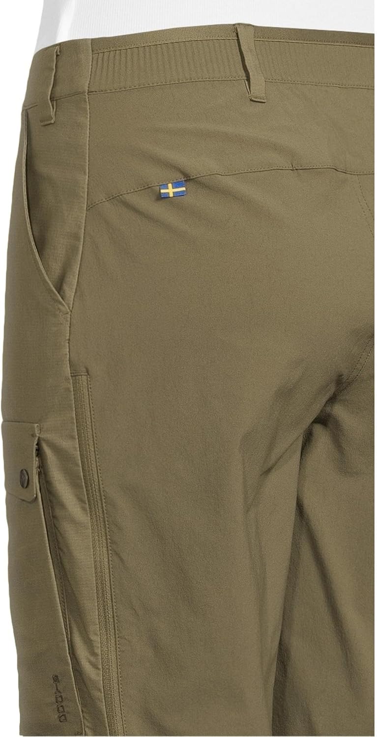 Meet the Fjallraven Abisko Hybrid Trail Trousers, designed for explorers who demand comfort, durability, and adaptability. Featuring a laminated elasticized waistband, these mid-rise trekking pants provide a secure fit without sacrificing movement. The G-1000 Lite Stretch front can be waxed for enhanced weather resistance, while the full-stretch back ensures superior ventilation and unmatched freedom on the move. Stay cool with zippered side vents, keep essentials close with open hand and buttoned leg pockets, and embrace every adventure in comfort. 52% recycled polyester, 35% organic cotton, 13% polyester. Machine washable.