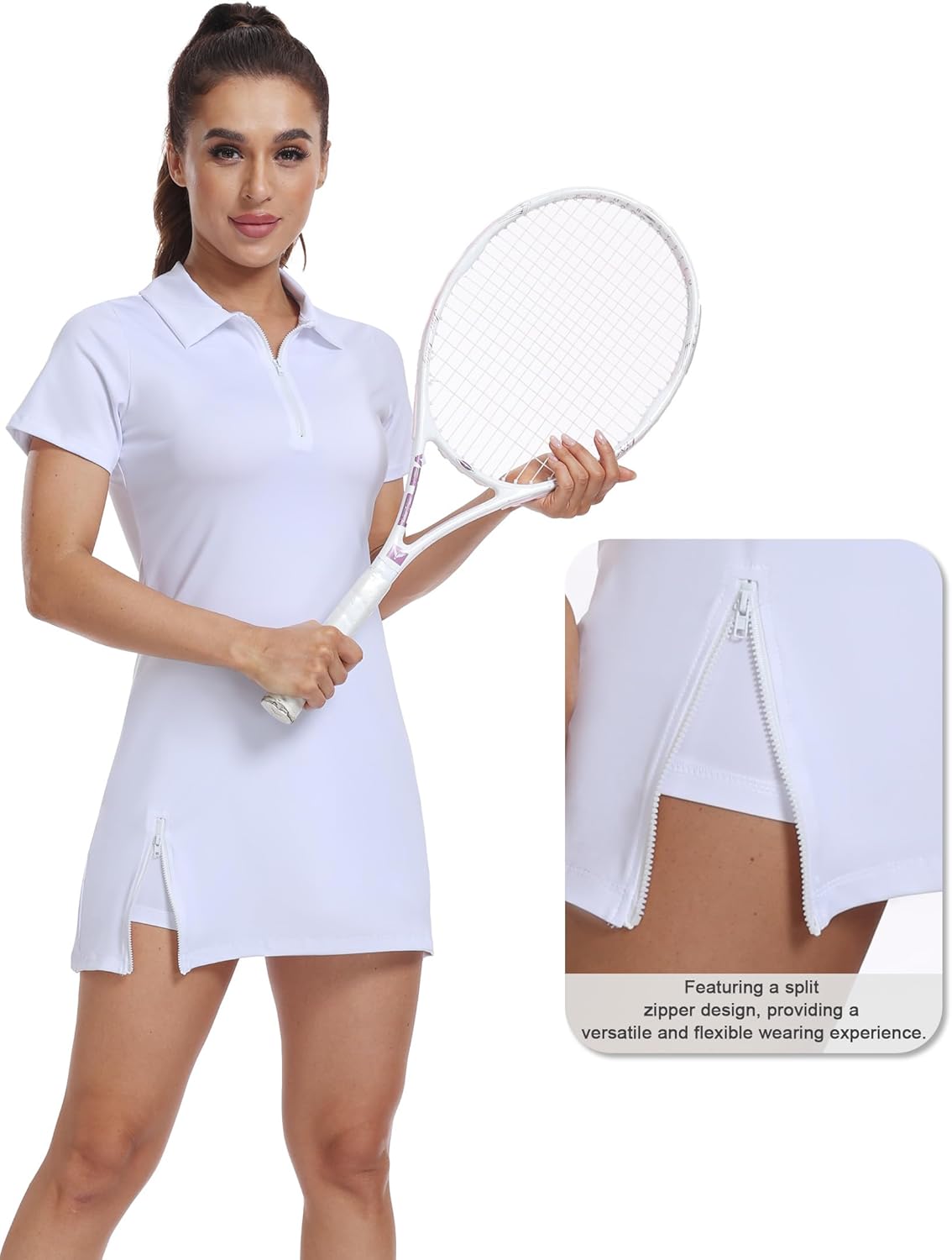 Exude Confidence and Charm with Unparalleled Fashionable Sporty Style! Introducing the FKEEP Women's Tennis Golf Dress, designed to make you the center of attention on the court. With its meticulously crafted tailored cut and striking color-block elements, this dress allows you to showcase unmatched confidence and captivating charm, epitomizing a unique blend of sporty fashion. Our unwavering commitment to comfort and breathability is evident in the choice of premium polyester and spandex blend fabric. Soft, skin-friendly, and quick-drying, this fabric ensures a cool and dry state even during prolonged matches or outdoor activities, providing you with ultimate comfort. The multifunctional design takes convenience and practicality into consideration. The built-in shorts eliminate any worries of accidental exposure while offering additional coverage. Moreover, the convenient pocket allows for easy carrying of essentials such as your phone or keys, enabling you to focus solely on the game without distractions. Experience the freedom and flexibility of movement with our dress. The split zipper design at the hem expands your range of motion, allowing unrestricted swings and showcasing your skills and grace on the court. The complementing inner shorts ensure both comfort and confidence throughout your physical activities. Not only suitable for tennis and golf, but the FKEEP dress is also perfect for workouts, running, and various outdoor activities. Additionally, it effortlessly transitions into a stylish casual outfit that can be worn for different occasions and seasons. Choose the FKEEP Women's Tennis Golf Dress, where sports and fashion intertwine seamlessly. Embrace your confidence and allure, and indulge in the perfect fusion of style and comfort.