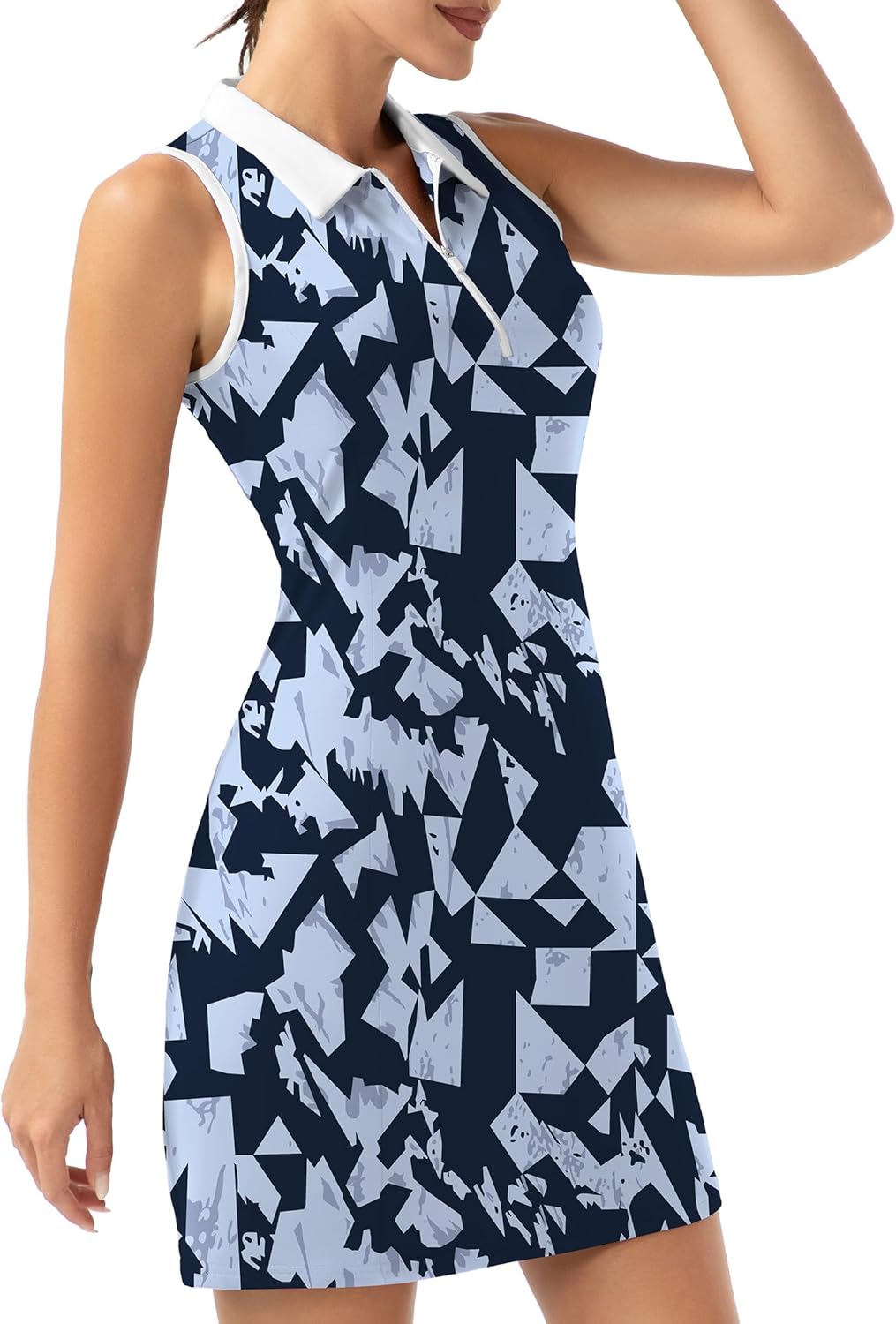 FKEEP Women's Golf Tennis Dress Sport Activewear Zipper V-Neck with Shorts and Pocket Workout Athletic (Blue Plaid, L)