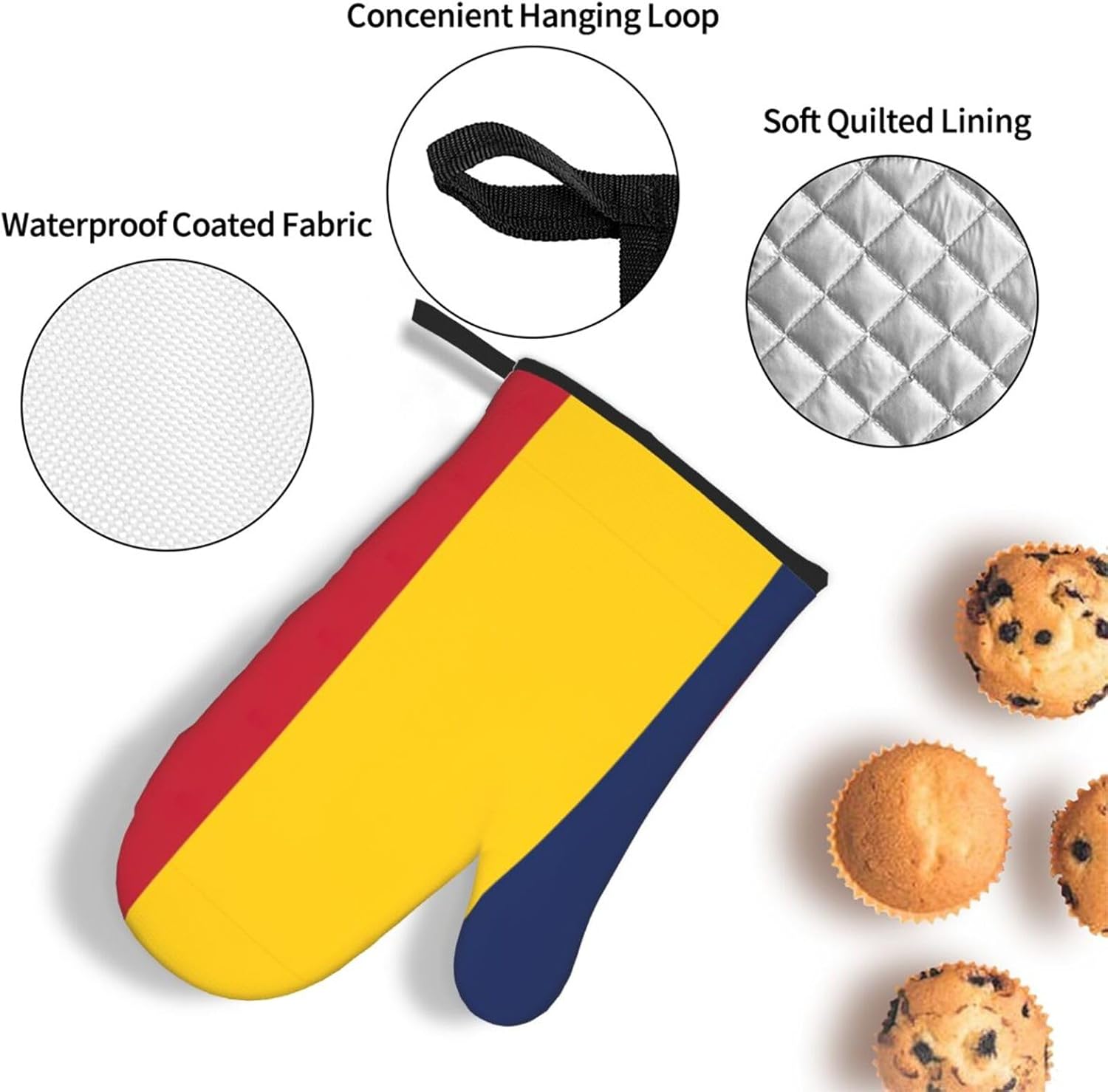 upgrade your kitchen safety with this Flag of Chad print microwave gloves, oven mitts and pot holders sets. crafted from water repellency polyester and heat-resistant fabric, these kitchen baking three piece set offers reliable protection for hands while handling hot items. the double-layer waterproof design ensures easy cleaning after use. suitable for various cooking scenarios including microwave ovens, conventional ovens, stovetop cooking, and outdoor grilling. the side hanging rope allows convenient storage when not in use. the thick construction provides excellent heat insulation without compromising dexterity. this unisex kitchen essential combines functionality with practical design for everyday cooking needs. the heat-resistant gloves maintain comfort while offering superior protection against burns. an essential addition to any modern kitchen setup