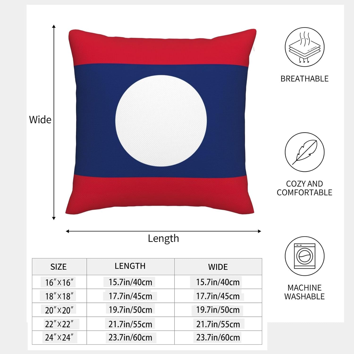 Wrap yourself in the relaxed elegance of our Flag of Laos print imitation linen pillowcase, which is a versatile addition to any space. This product is made of premium imitation linen fabric, integrating the eternal charm of linen pillowcases with modern practicality. Whether decorating your sofa, chair, garden, car, bed, or office, it will give people a low-key and exquisite feeling. Breathable texture keeps you cool in summer and comfortable in winter, making it a favorite all year round. Adopting an invisible zipper design, the appearance is seamless and easy to use. These stunning pillowcases are not only suitable for living room sofas or bedrooms, but also great present for family and friends. Fit for birthdays, anniversaries, and gatherings, it is the flawless way to add a touch of elegance to any occasion! It is not just a linen pillowcase, but also a canvas to showcase your personal style. Enhance your space with linen yarn, conveying comfort and elegance