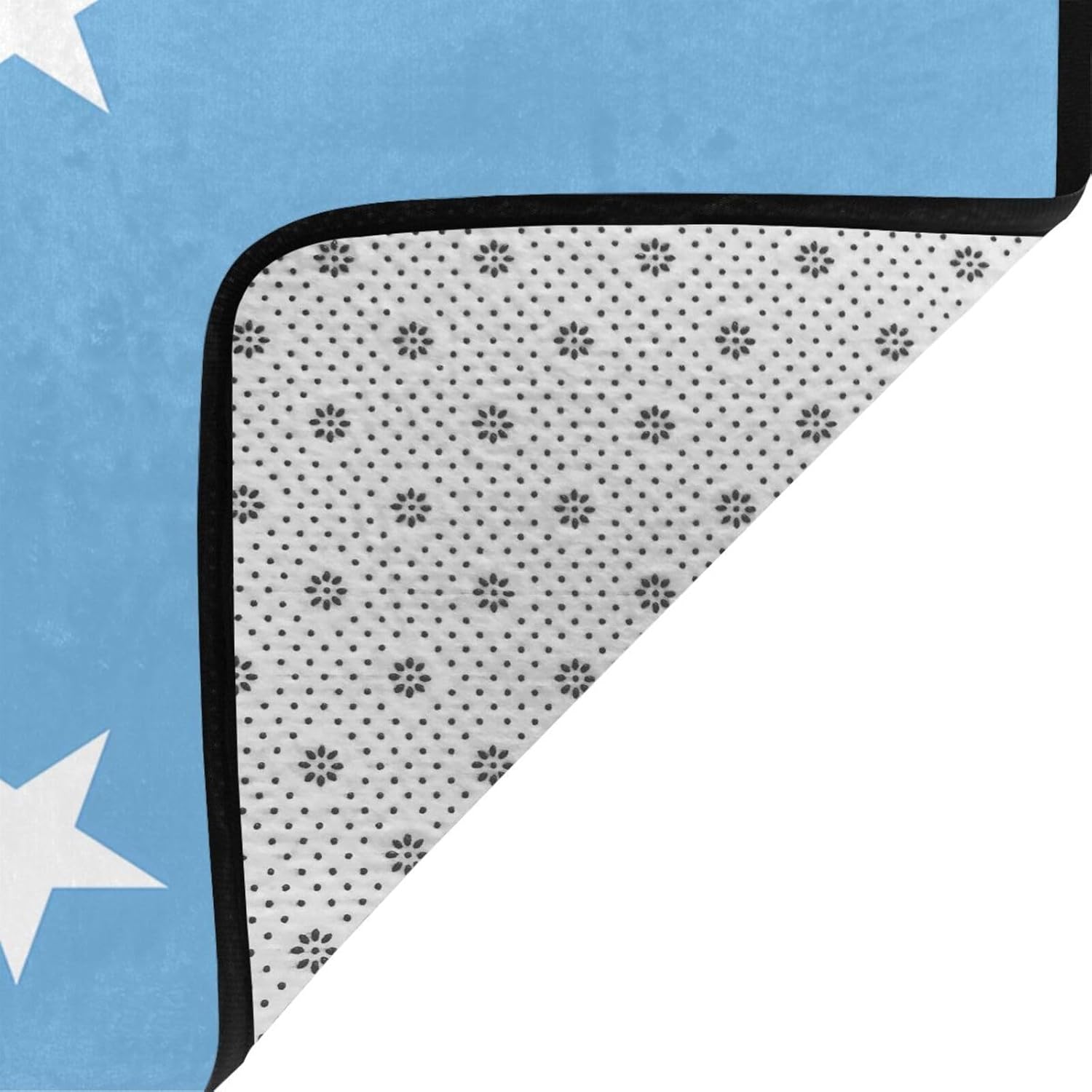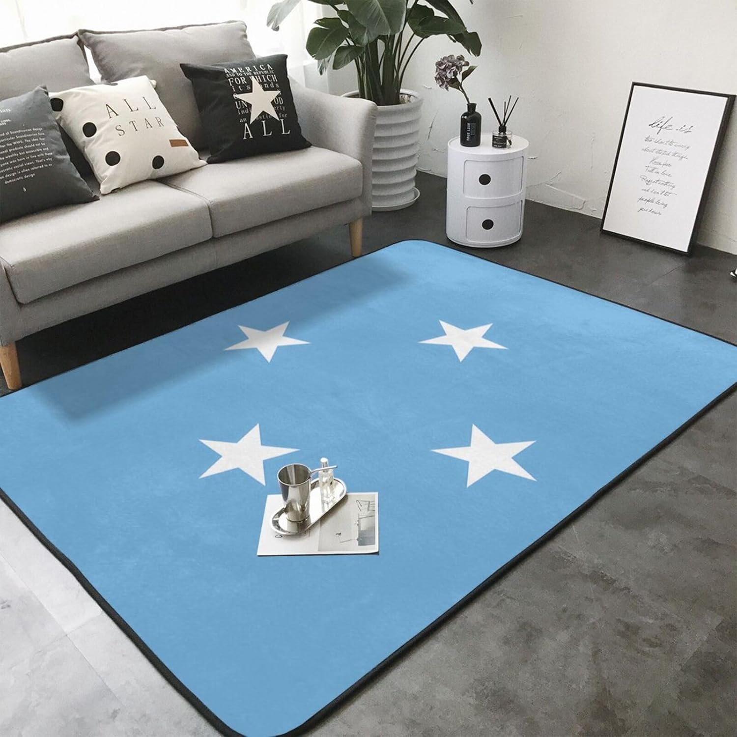This Flag of Micronesia printed decorative carpet is made of polyester flannel, which is delicate and soft to the touch, with tight and regular pile. It will not pill or fade after long-term use, and will always look like new. The middle layer uses high-density memory foam, which can automatically adjust according to the foot shape and pressure, providing precise massage for tired feet and relieving fatigue. The bottom is designed with non-slip plastic bottom non-woven fabric, which can firmly grip the ground even when it encounters water or on smooth surfaces, ensuring the safety of the elderly and children. It is easy to clean daily, can be machine washed or hand washed, and is wear-resistant and does not shed. Exquisite stitching technology and high-quality tailoring, with smooth edges, are suitable for a variety of scenes such as bathrooms, living rooms, and bedrooms. Non-slip, comfortable, and durable, adding a touch of intimacy and elegance to your life.