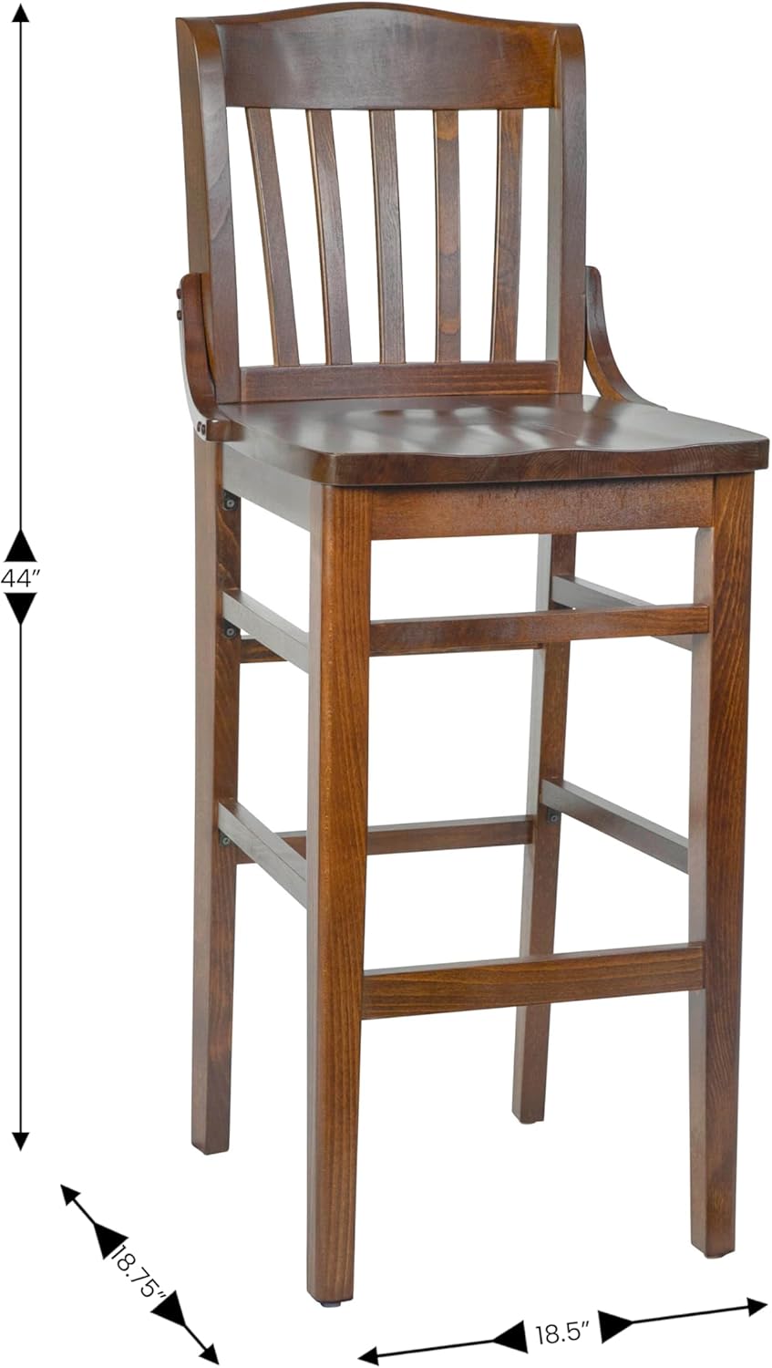 Offer a classic, elegant look when furnishing your establishment with this richly hued walnut wood bar stool. This wooden stool will make an attractive addition to your restaurant, lounge, bar or other high traffic venues. This tall bar stool is easy to clean, which is an important aspect when it comes to a business. This stool was designed to withstand the daily rigors in the hospitality industry, but will also provide a warm and inviting quality to your home. The durable Beechwood frame is stabilized with numerous support bars, which includes a footrest. The floor glides help protect your floors and ensure smooth gliding. This gracefully styled stool will highlight any space in your home or business.