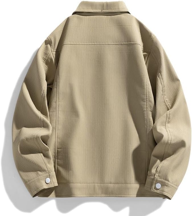 This men’s corduroy jacket combines classic style with winter comfort, featuring a soft ribbed corduroy exterior and a fuzzy fleece lining for warmth. Designed in a minimalist light gray tone, it adopts a timeless trucker jacket silhouette—complete with a button-front closure, two chest flap pockets, and adjustable button cuffs. The regular fit ensures versatility for daily wear, casual outings, or layered styling in cool weather. Durable stitching and quality hardware enhance its practicality, making it a reliable addition to your seasonal wardrobe.