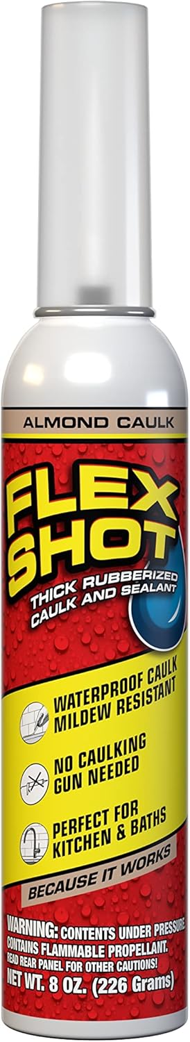 Flex Shot, Flexible Rubber Silicone Sealant, Waterproof Caulk, UV Resistant, No Caulk Gun Needed, Perfect for Kitchen, Bath, Showers, Sinks, Baseboards, Clear, 8oz, 2-Pack