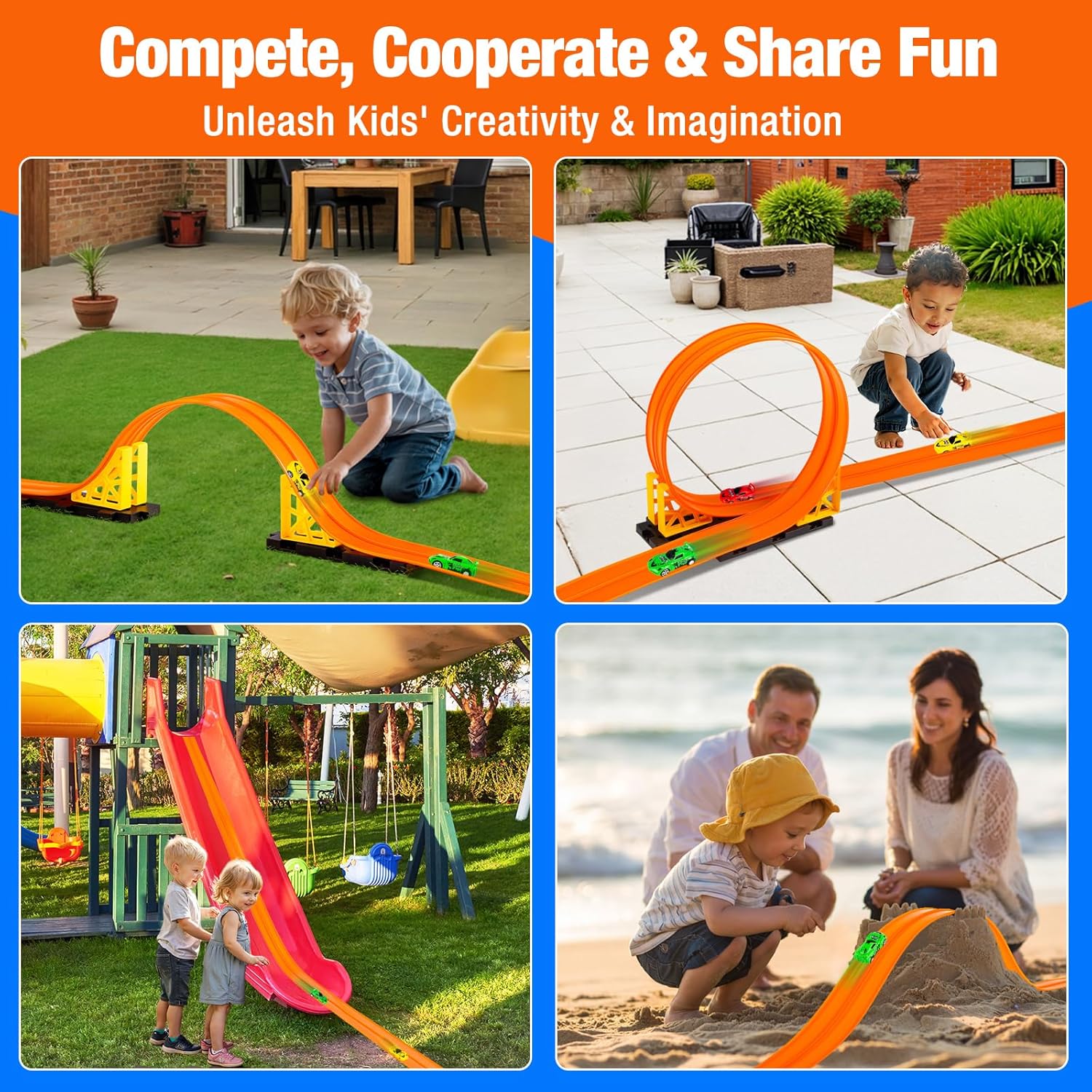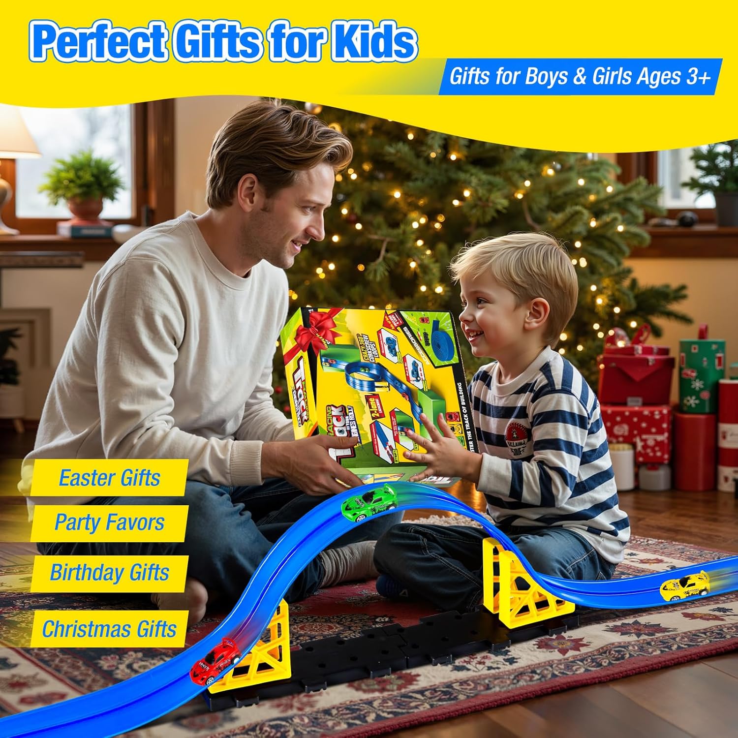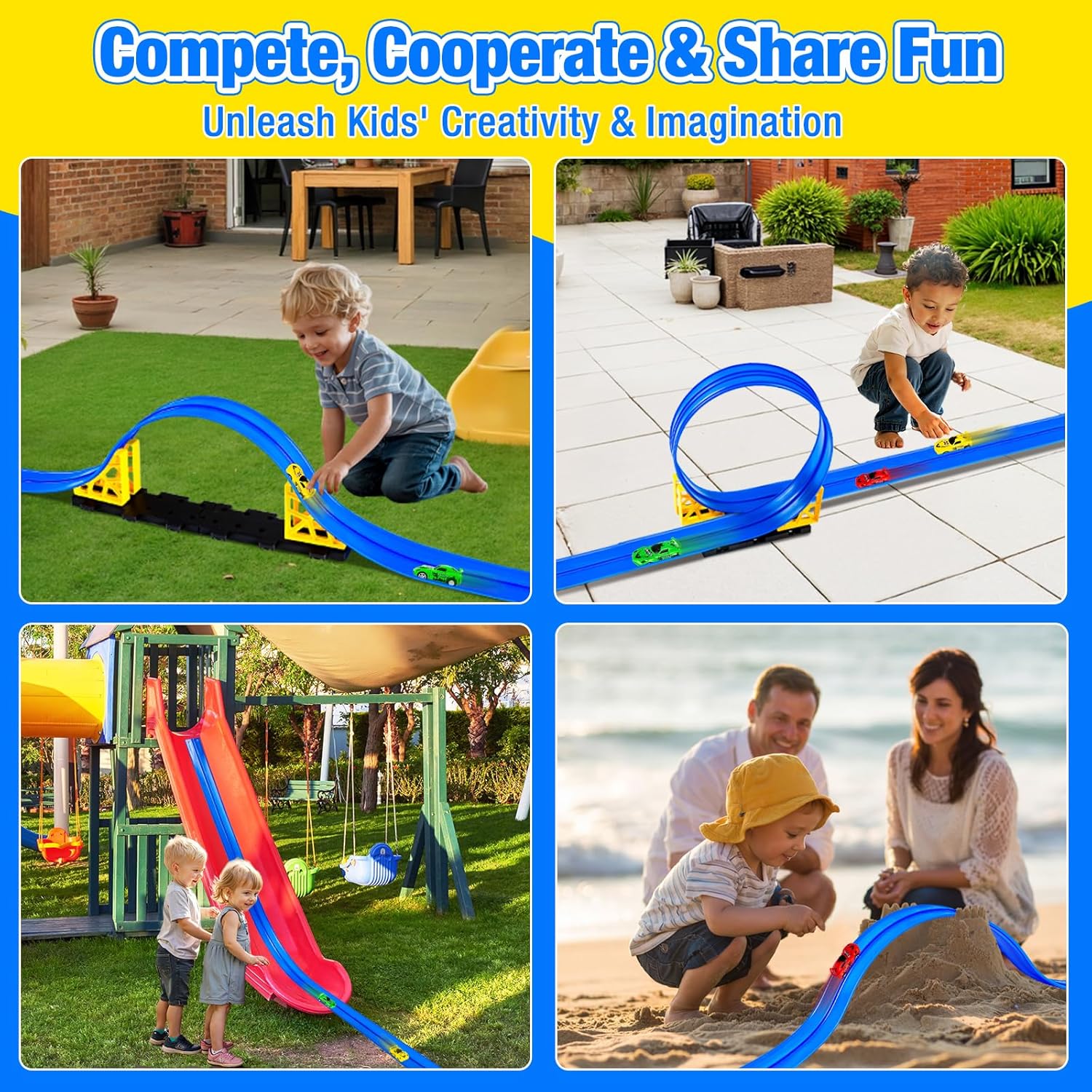 Aywewii Flex Tracks: Where Endless Creativity Meets Thrilling Races! Tired of boring, fixed racetracks that limit the fun? Meet the ultimate flexible race track for kids that transforms any space into an adventure zone! With super-strong suction cups, this portable racetrack sticks firmly to windows, tiles, refrigerators, and more—so your little racers can build tracks anywhere, from the living room to the backyard. Whether your child is a beginner or a seasoned racer, this flex track is compatible for Hot Wheels and 1:64 scale cars. They'll start with simple ramps, then advance to loops, twists, and gravity-defying stunts—all while learning hands-on physics and boosting creativity. Made from durable, waterproof PVC material, it's easy to roll up and store, making it the perfect stocking stuffers for kids. Ideal as a Christmas gift for kids or a birthday gifts for ages 3-6+, this flexible race track toy set encourages screen-free fun, problem-solving, and family bonding. Unleash their imagination and let them rule their own custom speedway—where every race is a new story! Why Parents and Kids Love It: Strong suction cups for multi-surface play Compatible with Hot Wheels & 1:64 cars Educational & fun—sparks STEM learning Portable & easy storage—great for travel Perfect gift for boys and girls 3+