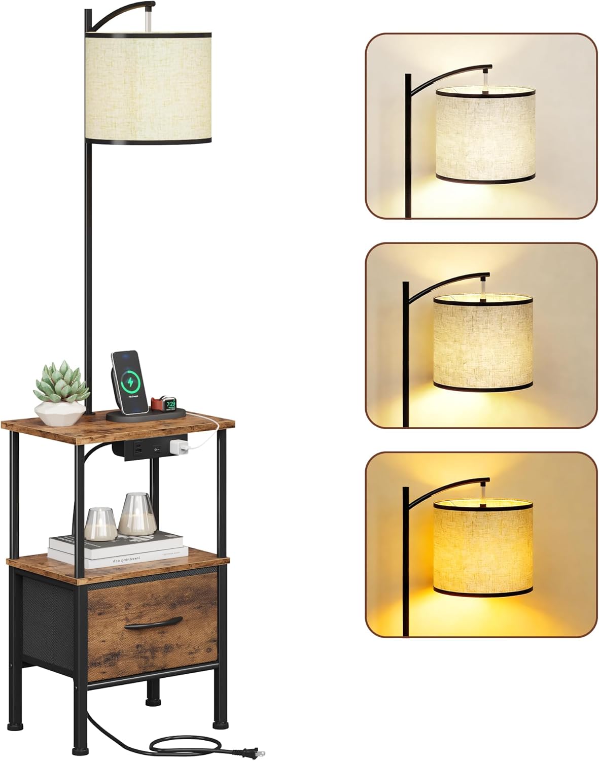 | Additional Features | Adjustable Color Temperature, Drawer, Linen Lampshade, USB & Type C Ports and AC Outlet |
