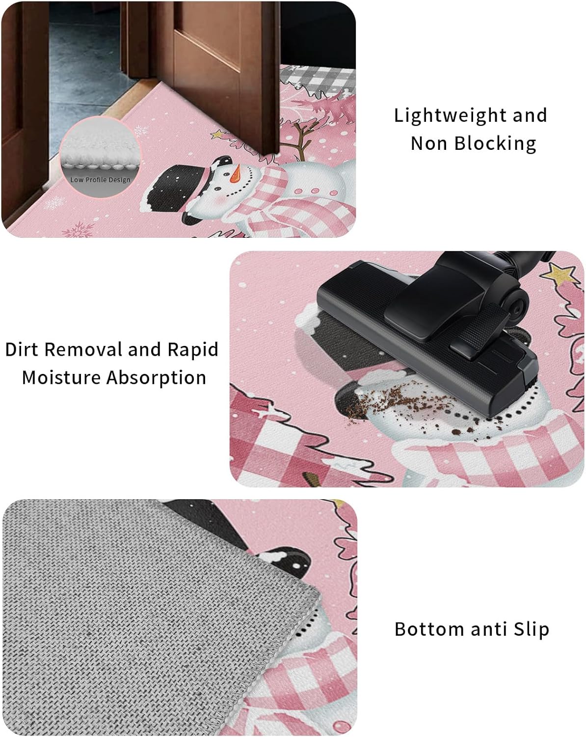 Luxury Material Made of polyester,soft and durable,the mat is perfect for your bedroom or living room,and since it's so thin,it won't interfere with the opening or closing of the door when placed under it. Absorb and Dry It can quickly absorb spilled water,and at the same time,it can be dried immediately without worrying about water damage to the floor. Non Slip Non slip latex rubber lining,better grip,not easy to slip,the elderly,children,pets can also walk on it very well,suitable for all kinds of floors. Easy to Clean Machine washable and hand washable,wash with mild detergent,dry to use again,do not bleach.Light maintenance only requires shaking or rinsing outside.