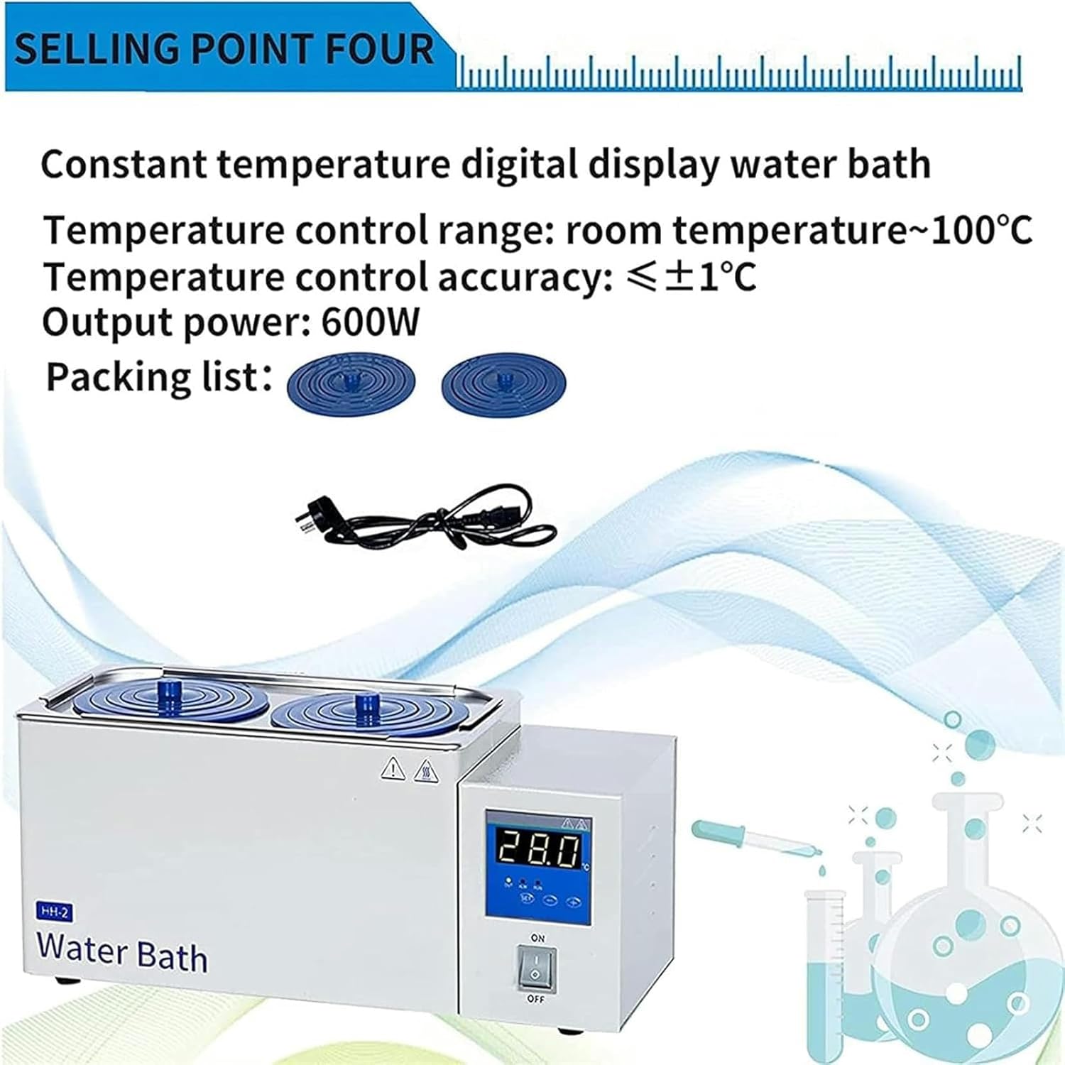 Model Number:The water bath is suitable for drying, concentration, distillation, impregnation of chemical reagents, biological preparations, and also for temperature tests such as constant temperature heating in the water bath. It is used for biological, genetic, aquatic, environmental, sanitation, biochemical laboratory, educational research laboratory testing tool.Specifications:Bath material: 304 stainless steelVoltage: 110V/220VPower: 600WTemperature control range: room temperature -100℃Resolution: 0.1℃Temperature display mode: digital displaySize: 43*17*20cmCapacity: 6.5LPackage Includes:1 * Lab Water BathsIf you have any questions, please write to us and we will be happy to help you.