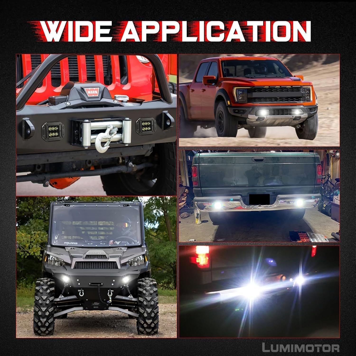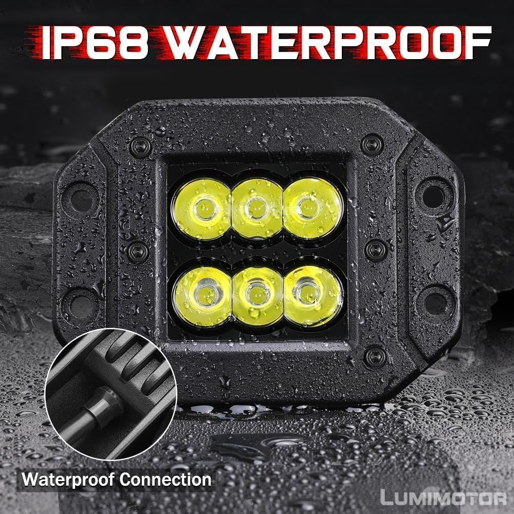 | Included Components | 2Pcs flush mount LED pods, shockproof EVA model, stainless steel nuts, bolts, washers, and allen wrench |