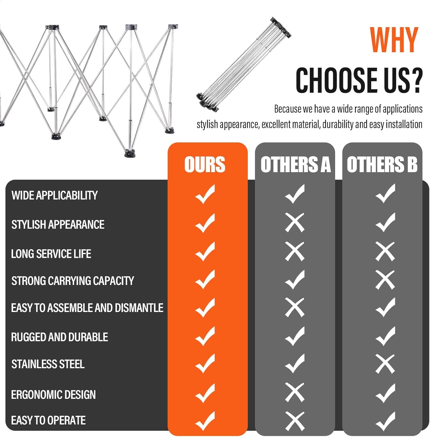 This Portable Work Stand is your perfect partner for safe work and garage repair without complicated installation steps. Protecting your safe operating, this stand comes with a Portable Storage Bag. Specifications:Model: 10 legs (with bag)Product stretched size: about 221x60x73cm/87.01x23.62x28.74 inchesMaximum load: about 1000kg/2204.6lbsPackaging size: about 90.5x33x14cm/35.63x12.99x5.51 inchesPackaging weight: 7250 g/15.98 lbsMaterial: Stainless steelPacking List:1* Foldable Workbench1* Storage BagNotes:1. Due to different lighting and screen settings, the item color may be slightly different from the picture.2. Due to different manual measurements, please allow a 1-2cm difference in size.