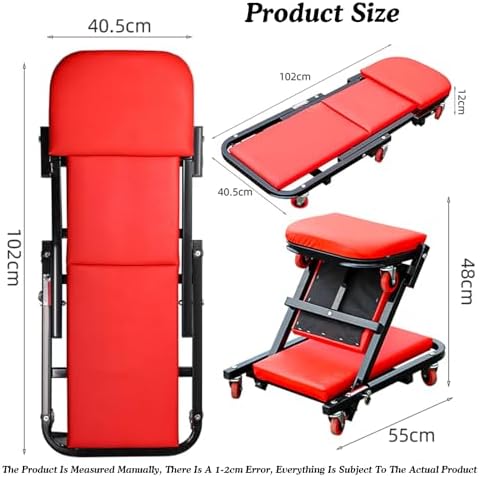 Introducing our versatile Low Profile Creeper – the perfect companion for automotive enthusiasts and professionals alike. Whether you're working in a garage, warehouse, or workshop, this essential tool enhances your efficiency during car repairs and various projects. **Key Features:** 1. **Compact Design:** Easily navigate narrow spaces, making it an indispensable tool for any garage or repair shop. 2. **360° Omnidirectional Wheels:** Enjoy seamless mobility with wheels designed for smooth maneuvering, allowing you to focus on your work without interruptions. 3. **Easy to Clean :** Maintain a professional appearance effortlessly, as the is designed for quick and easy cleaning. **Specifications:** - **Product Name:** Low Profile Creeper/Automotive Creeper and Air Seat/Foldable Garage Chair/Mechanic Creeper - **Color:** As shown in the image - **Material:** carbon steel and leather - **Overall Dimensions:** 40.5 x 102 cm (L x H) - **Folding Size:** 55 x 48 cm (L x H) - **Assembly Required:** Yes - **Maximum Load Capacity:** 300 lbs (136 kg) **Package Includes:** - 1 x Folding Car Creeper Seat - 1 set of mounting accessories **Important Notes:** - This listing is for the Folding Car Creeper Seat only; other accessories are not included. - Please allow slight color variations due to lighting and a 1-3 cm measurement error as this is a manual process. Elevate your workspace with our Low Profile Creeper, designed to provide comfort and functionality during your automotive tasks. Experience the value of a well-crafted tool that meets the demands of your daily s. Order yours today!