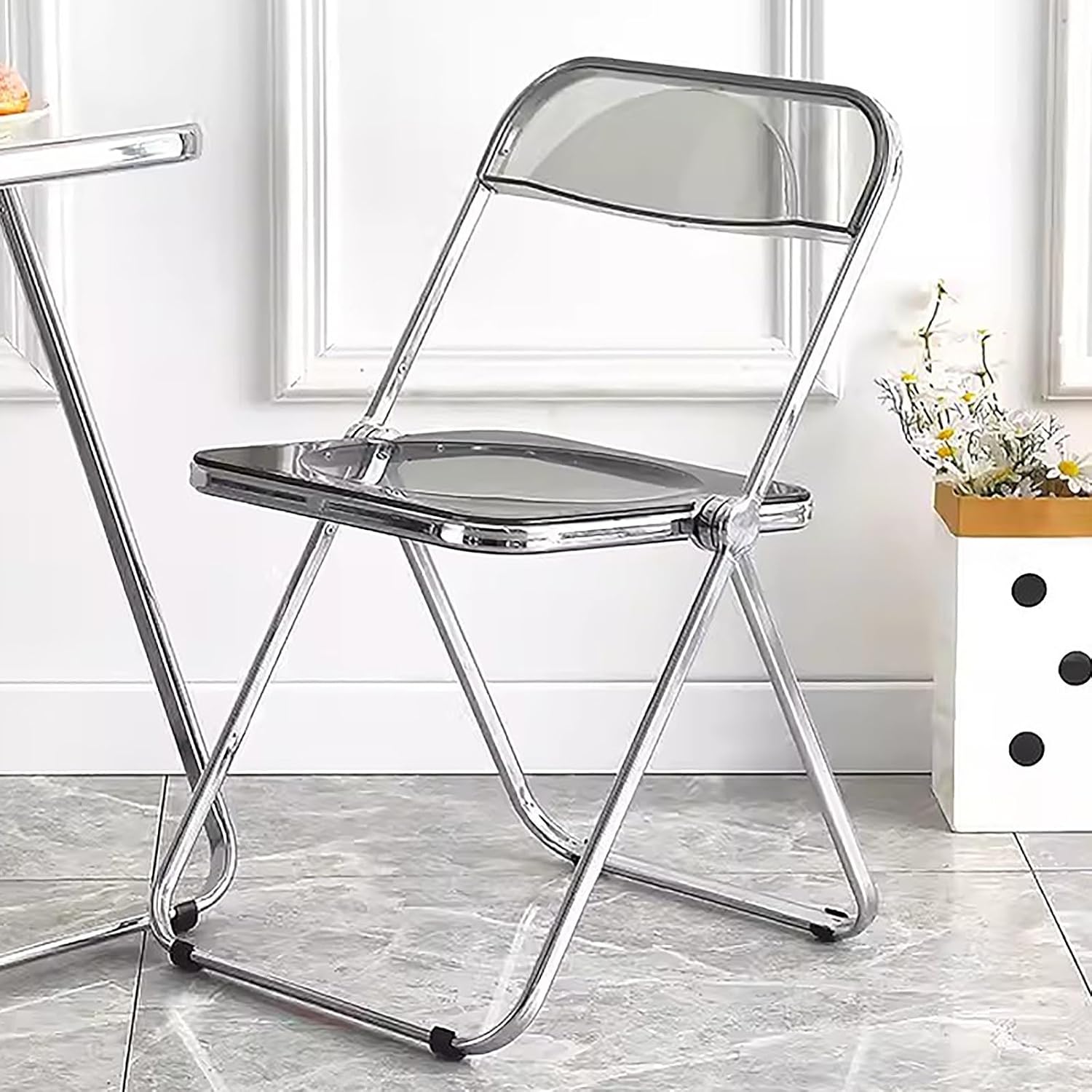 Stools to Sit On Folding:Product Name: Acrylic Folding Chair Color: Transparent color, Smoky gray, Black, Blue, Green, Brown, Off white, Red, Pink, Amber. Size: Unfolded size: 18.5 X 18.8 X 29.1in Folded size: 18.5 X 1.5 X 35in Made from high-quality materials, this chair combines durability and portability to enhance your lifestyle. With its sleek, transparent design, our acrylic folding chairs are the perfect blend of style and functionality, making it perfect for small spaces. With multiple color options to choose from, you can find the perfect chair to match your decor. Add a touch of modern style to your home or office. Manual measurement, there are slight errors; please refer to the actual items received, so as not to interfere with the imagination. If you have any questions, please contact us, we will reply to you within 24 hours.