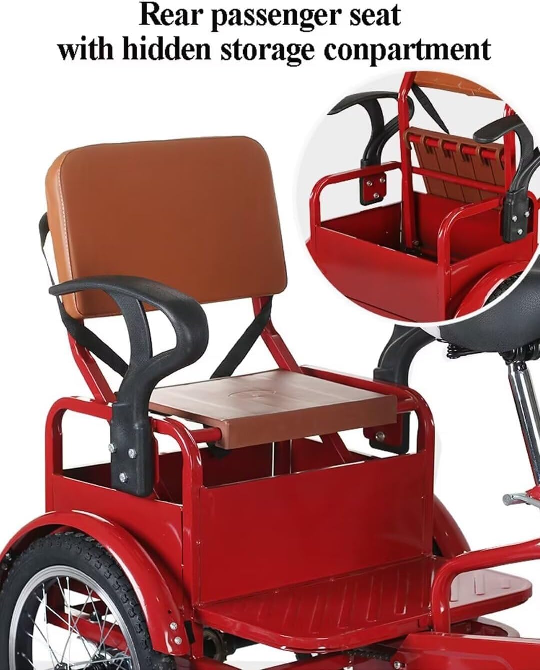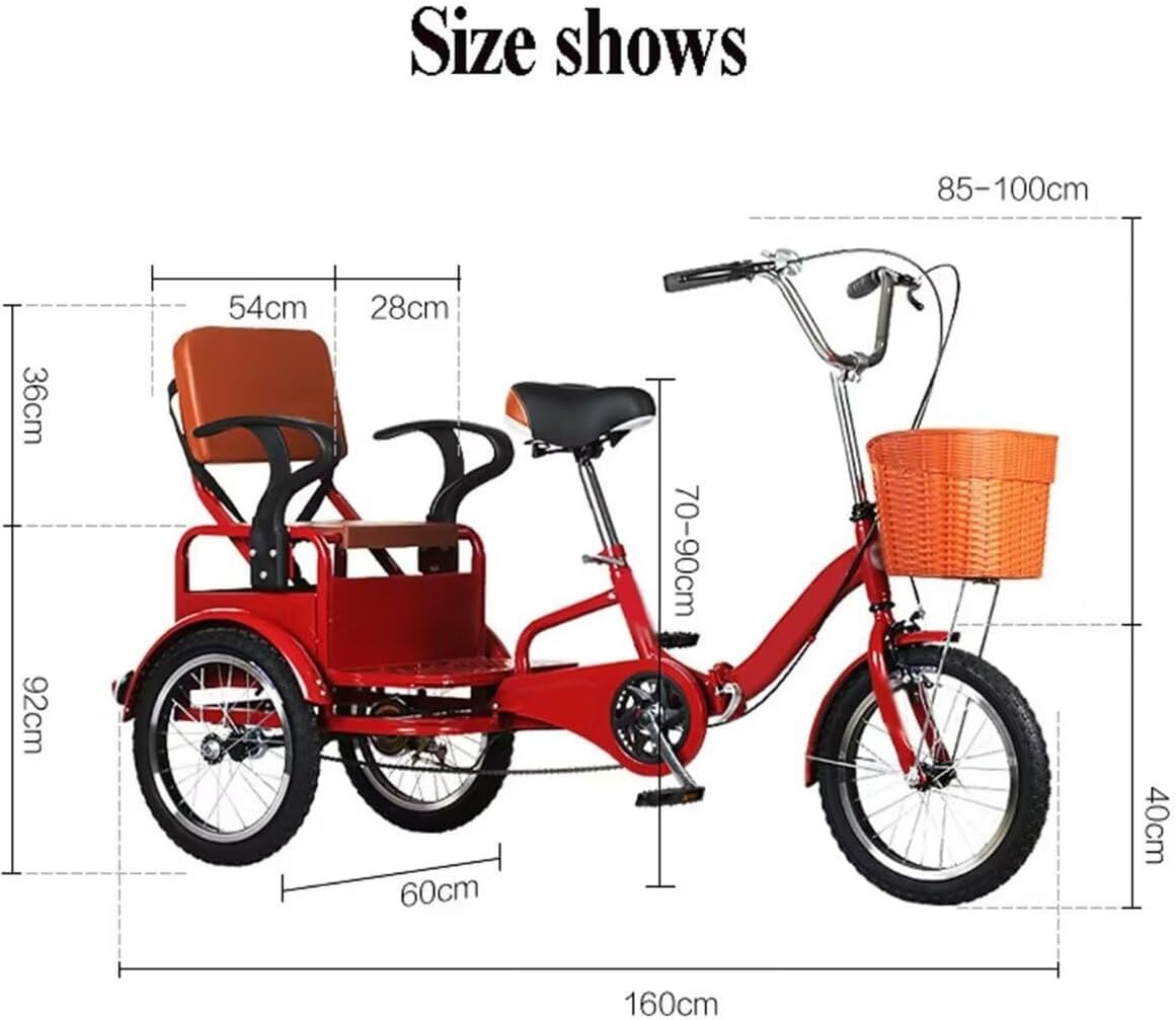 Parameters: Frame:high carbon steel Tire:rubber pneumatic tires Wheel:aluminum alloy rim spoke wheels Pedals:ABS plastic Grip:rubber Max load:200kg Color:wine red,black,red Size:16inch 16inch--total length 160cm,rear wheelbase 60cm,handlebar from ground 85-100cm,saddle from ground 70-90cm,wheel diameter 40cm.Suit body height 140-185cm. Note: Do not use on public transport roads, and ensure that children are accompanied by adults when using it.