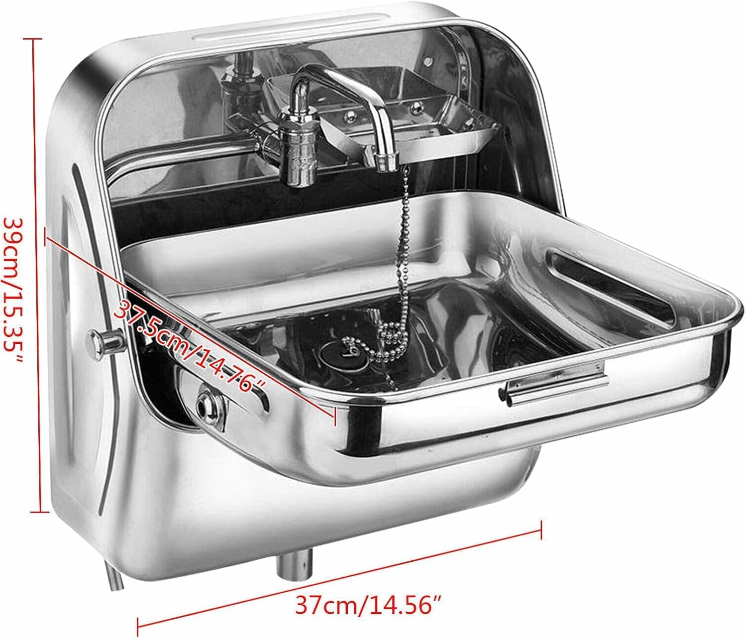 DescriptionThis compact folding sink features soft water flow, smooth drainage, and a convenient design, making it practical and suitable for most RVs, self-driving travel, campers, and boats.Key Features Sturdy and Durable: The 304 stainless steel with the polishing process and one-time stretching forming resists rust and corrosion from acid, alkali, and salt. Its high hardness and strength make it resistant to scratches and deformation, ensuring long-term use. Space Saving: This item fully utilizes the vertical space of the RV, and the foldable design ensures it does not occupy too much space. After folding, it can also serve as a temporary storage platform for added convenience. Soft Flow: The curved faucet with a ceramic valve core releases a soft, non-splashing, clean, and natural stream, providing a smooth water flow while saving water. Easy to Use: The faucet can rotate 90 degrees from left to right (on) or from right to left (off), and the lid can be closed when not in use, making it flexible and easy for all users. Considerate Design: Large capacity (11.811.83.4 in) allows you to collect water for various cleaning tasks. The built-in soap dish provides space to organize detergent or other items, creating a convenient and organized cleaning area on your RV. Easy to Clean: The smooth surface and simple structure make it easy to clean and maintain, keeping it glossy and tidy. Exquisite Appearance: Smooth lines, quality accessories, and low-key silver create a simple and fashionable look, enhancing the aesthetic of your RV. Guaranteed Customer Service: We aim to provide quality products and services. If you have any problems, please contact us.DetailsRounded Corners: Corners and edges are finely ground for a comfortable and safer touch.Precision Connectors: Each part is connected with precision accessories to ensure tightness and flexibility.ApplicationIt is suitable for RV caravans, bars, food trucks, campers, motorhomes, boats, vans, etc.SpecificationColor: SilverStyle: ModernShape: RectangularAssembly Required: YesFacet Type: Cold FaucetMaterial: 304 Stainless Steel, Copper, CeramicProcess: Polishing, One-time Stretching Forming Room: CaravanMounting Type: Wall MountWall Thickness: 1mmOutlets Numbers: 1Water Drain Holecut Size: 4.1cm/1.61 inBowl Size: 30*30*8.6cm/11.8*11.8*3.4 inOverall Size: 37*37.5*39cm/14.56*14.76*15.35inWeight: 5kg/11.02 lbsPackage Included1* RV Folding Sink All Accessories for Assembly