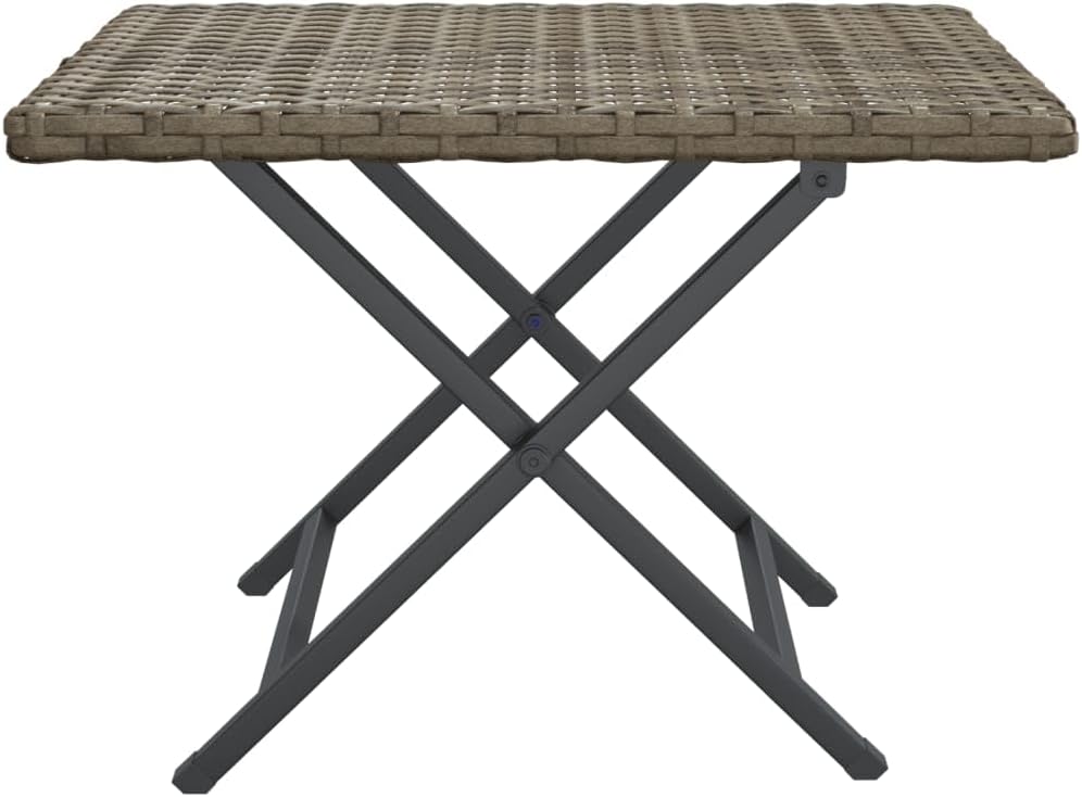 Patio, Lawn & Garden / Patio Furniture & Accessories / Tables / Bar TablesThis folding table is designed to be a practical and decorative addition to your garden, balcony, or patio.Durable material: PE rattan, also known as poly rattan, is weather resistant and easy to clean. It remains beautiful on the outside for a long period of time. It's more economical than other materials while offering great quality, convenience, and an aesthetic look.Stable frame: Steel is an exceptionally hard and strong material. It offers sturdiness and stability for the garden table. The powder coating on steel creates a protective layer against wear and tear.Foldable design: The table can be easily folded away when not in use, for easy storage and transportation.Good to know:To make assembly as easy as possible, each product is delivered with a manual.Note:To make sure your outdoor furniture stays beautiful, we recommend protecting it with a water resistent cover.Color: GrayMaterial: PE rattan, powder-coated steelDimensions: 17.7" x 13.8" x 12.6" (L x W x H)