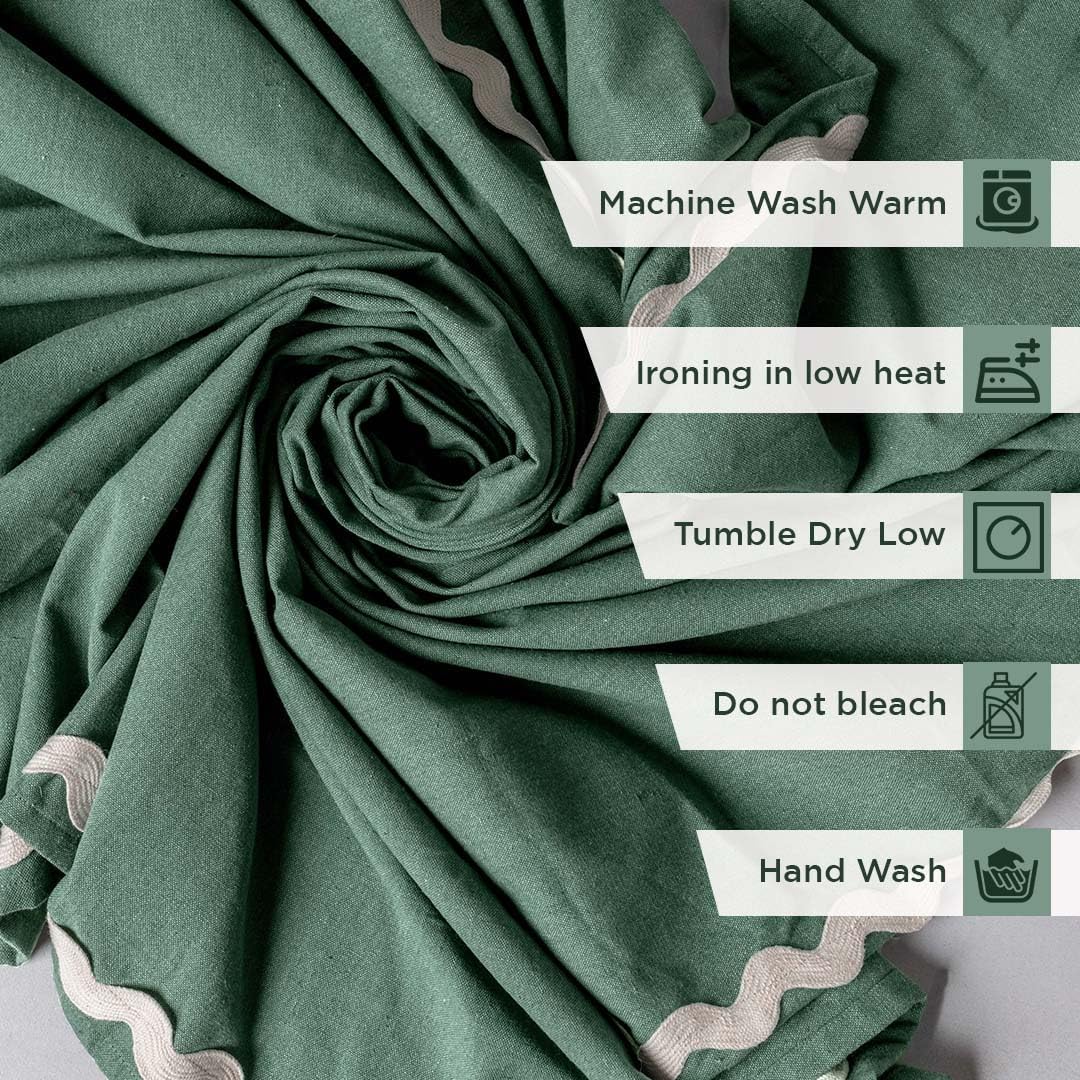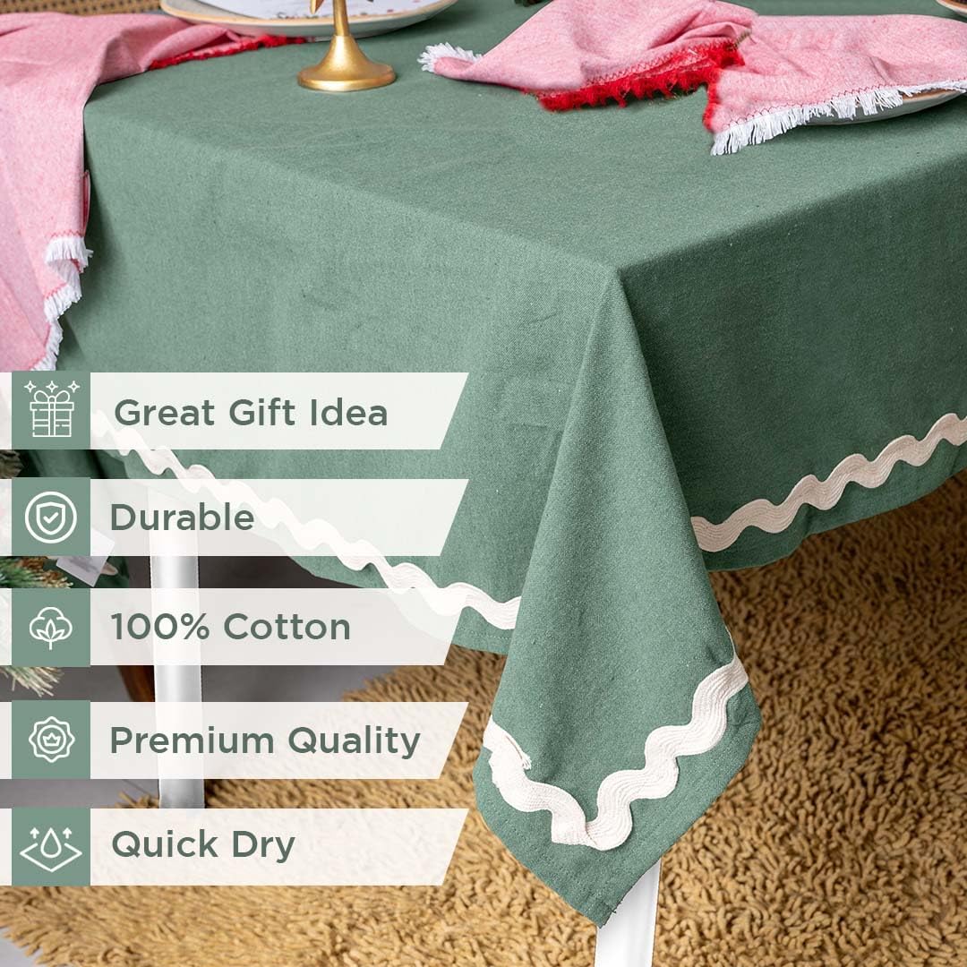 • [ PREMIUM QUALITY ] - These thick tablecloths are made of 100% woven cotton. These extra large tablecloth or green table cloth christmas come with beautiful detailing to give it an elegant look. This party table cloth will match all home interior settings & would work perfectly for modern, farmhouse, Christmas & wedding decors outdoors.