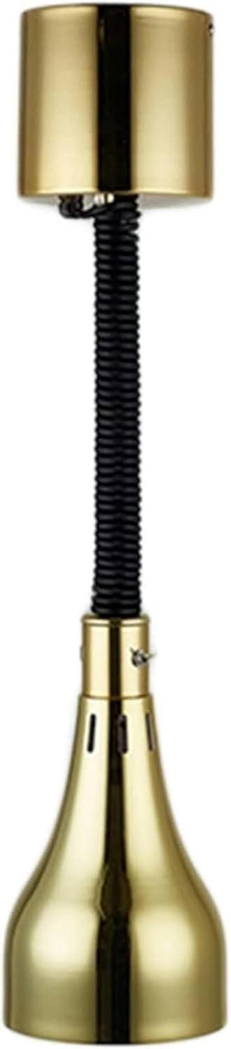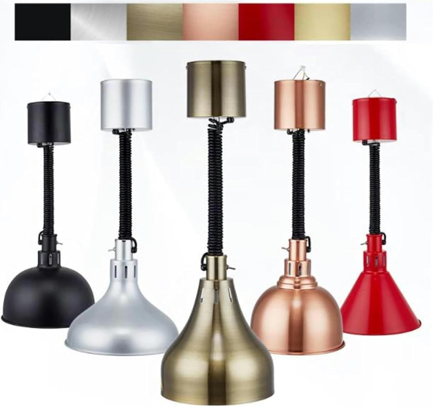 The food warming lamp uses a uniform temperature to maintain the taste of the food. Infrared heat can prevent the food from drying out,and it will not allow the food to overheat,ensuring the freshness,deliciousness and safety of the food,and heating is even,no cold zone is formed. The heat lamp is the best choice for buffets and hotels! The lamp has its own switch,which can be turned off at any time,saving energy and environmental protection. Parameter: Material: Metal+Electroplating : Stretching Range: 70-190cm27.6-74.8 inch Use place: daily use in the home kitchen,buffet food preservation,pizza heating Package includes Food heat lamp × 1 250 W light bulb × 1 Note: the lamp itself can be stretched to 190cm,but when lifting,because the lamp itself has a certain weight,it can be stretched to 130-150cm at most. In addition,try not to stretch to the maximum limit.