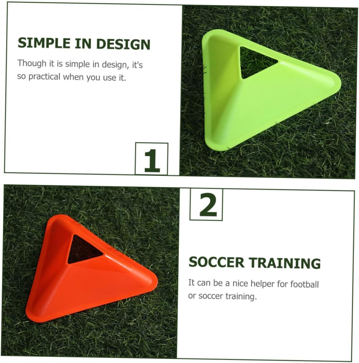 Package List 20 x Football Training Plates Features -Size: 18.00X18.00X5.00cm/ 7.07X7.07X1.97inch Triangle Plate -Color: Assorted Color Football Training Plate -Material: PE Soccer Training Obstacle -Made of materials, durable and safe for a long time use Soccer Sign Disk. -It can their coordination, patience and practical ability Football Training Tool. -Smooth surface, bright in color. Sure to bring you more convenience and fun Practical Football Obstacle. -With triangle shaped design, it can be easily found Training Accessory. -Good toughness, not easy to break, can be used repeatedly. Aid for any given athletic practice Training Obstacle.Goods DescriptionTriangle Sign Plate Are you looking for a professional, yet football training marker? Are you in search of a sturdy, trustworthy marker that can be used for football training? , ! Our marker sign must meet you needs.Football Training Supply It is one of the choices for you