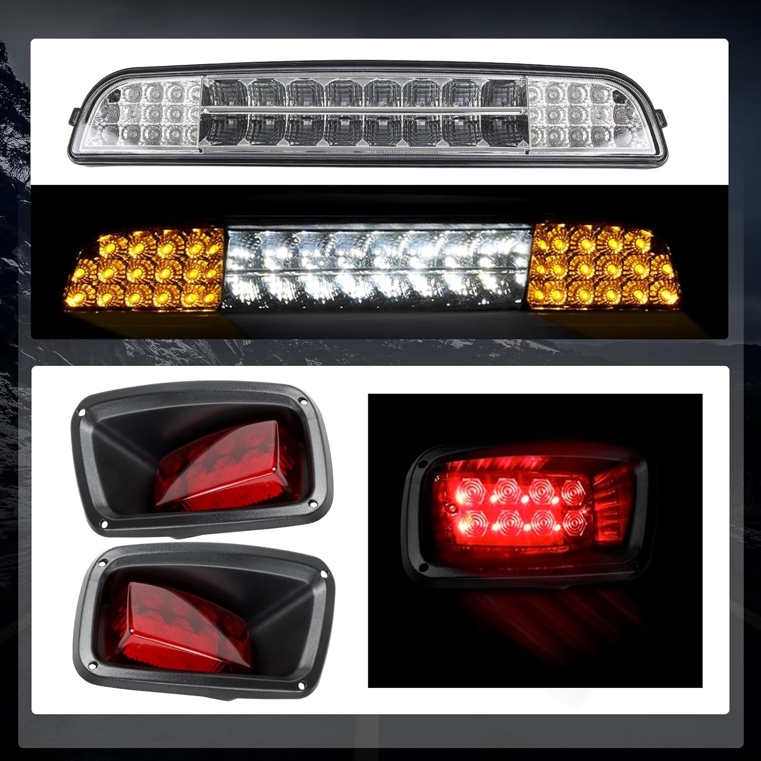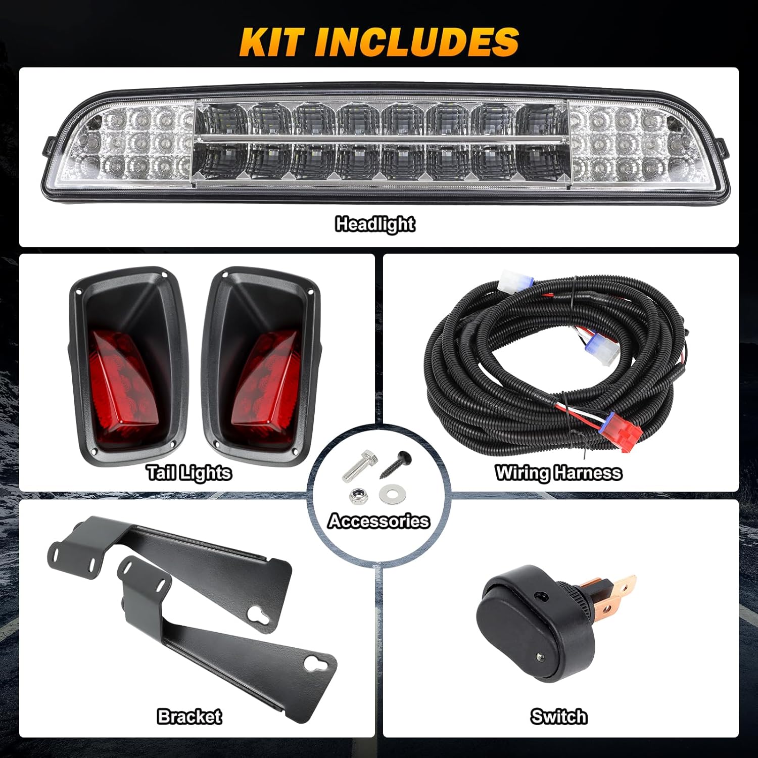 Feature: 1. Easy to install, plug and play 2. High Quality Plastic Housing 3. Durable and stable 4. Long Lasting Lifespan 5. IP67 waterproof 6. High Impact Resistance 7. Not easy to age 8. Low energy consumption 9. High Brightness 10. Anti-Condensation & High Transmittance Specification: 1. Material: ABS 2. Housing Color: Red and Clear 3. Bulb Types: LED 4. Light Source: LED. 5. Voltage: 12V. 6. Compatible With: 1996-2013 E-Z-GO TXT Golf Cart. 7. Package Included: LED Headlight Bar* 1, LED taillight(left and right)*1, Switch*1, Wiring harness*1, Bracket*2, Set of Accessories*1. Note: 1. Pls confirm the product if it matches your car before you purchase. 2. The voltage of the light kits are all 12V, If your E-Z-GO TXT Golf Cart is 48v or 36v, you must need a 48V-12V or 36V-12V reducer, (voltage reducer is not included). 3. If there are any problems with our products, please feel free to tell us in time, we will respond immediately and solve it perfectly.