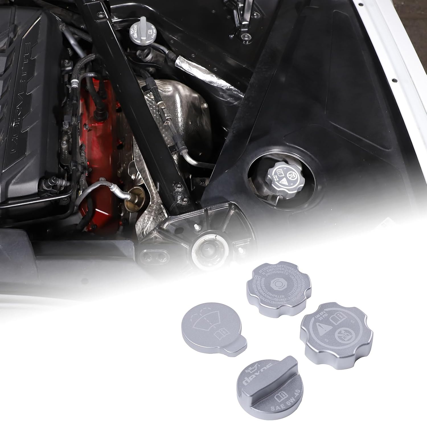 Suetlcoity offers a wide range of accessories to enhance and upgrade both the look and function of your vehicle . We sincerely appreciate your decision to purchase our products, we always committed to providing the high-quality, safe automotive decorative products and the excellent ,professional and customer service.📌Item Description:Applicable Model: Compatible with Chevrolet Corvette C8 2020 2021 2022 2024 2025. Condition:Brand NewMaterial: Made fromaluminium alloy material with precision cutting process.It iswhich is strong, anti-oxidation, not easy to rust, wear-resistant, scratch-resistant,and with a long service life.not only improves the monotonous or faded look of car's Engine location It also easily improves friction. It feels better when you turn the cap by hand. 📢Attention:Please check whether this item can fit on your car before purchasing.if you meet any problems when using our devices, please feel free to contact us and our staff will reply in 24hrs.💡Installation method:Step1.Wipe the surface where you want to stick. Keep dry and clean .(Very important)Step2. Determine the installation location and then make comparison of the product and installation location. If the product doesn’t fit your vehicle, please contact us immediately and do not install.Step3.Remove the protective film from the Double-sided tape on the back of the product. For better results, it is recommended to heat the double-sided tape with a hairdryer or lighter.Step4.Paste the accessories in the corresponding position and you can use the edge of a sheet of credit card to help press it to make sure the adhesive sticks firmly.🎁Package Include:4pcs/set of Suetlcoity Engine Oil Cap Radiator CapSuetlcoity will also produce other automotive accessories, please check our store for details.