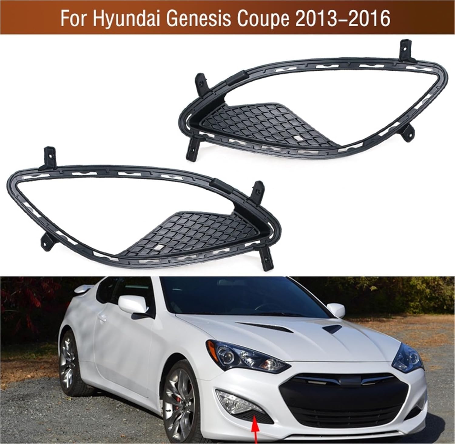 For Hyundai Genesis Coupe 2013 2014 2015 2016 Front Bumper Fog Light Lamp Grille Cover Frame Foglamp Trim Lid Bezel HoodFit For Hyundai Genesis Coupe 2013-2016Product Description:Features:Direct replacement to your unit.Easy installation.Specifications:Material: PlasticPackage include:1pc or 1pairNote:Please make sure it is suitable for your car before you purchase.Special Features : front bumper fog light lamp grille Bezel Shell HoodOther Part Number : front bumper fog light cover frameManufacturer Part Number : For Hyundai Genesis Coupe front foglight foglamp cover frame grilleSuitable For Lamp : fog lightsOEM NO. : For Hyundai Genesis Coupe front foglamp lid cap coverMaterial : ABS