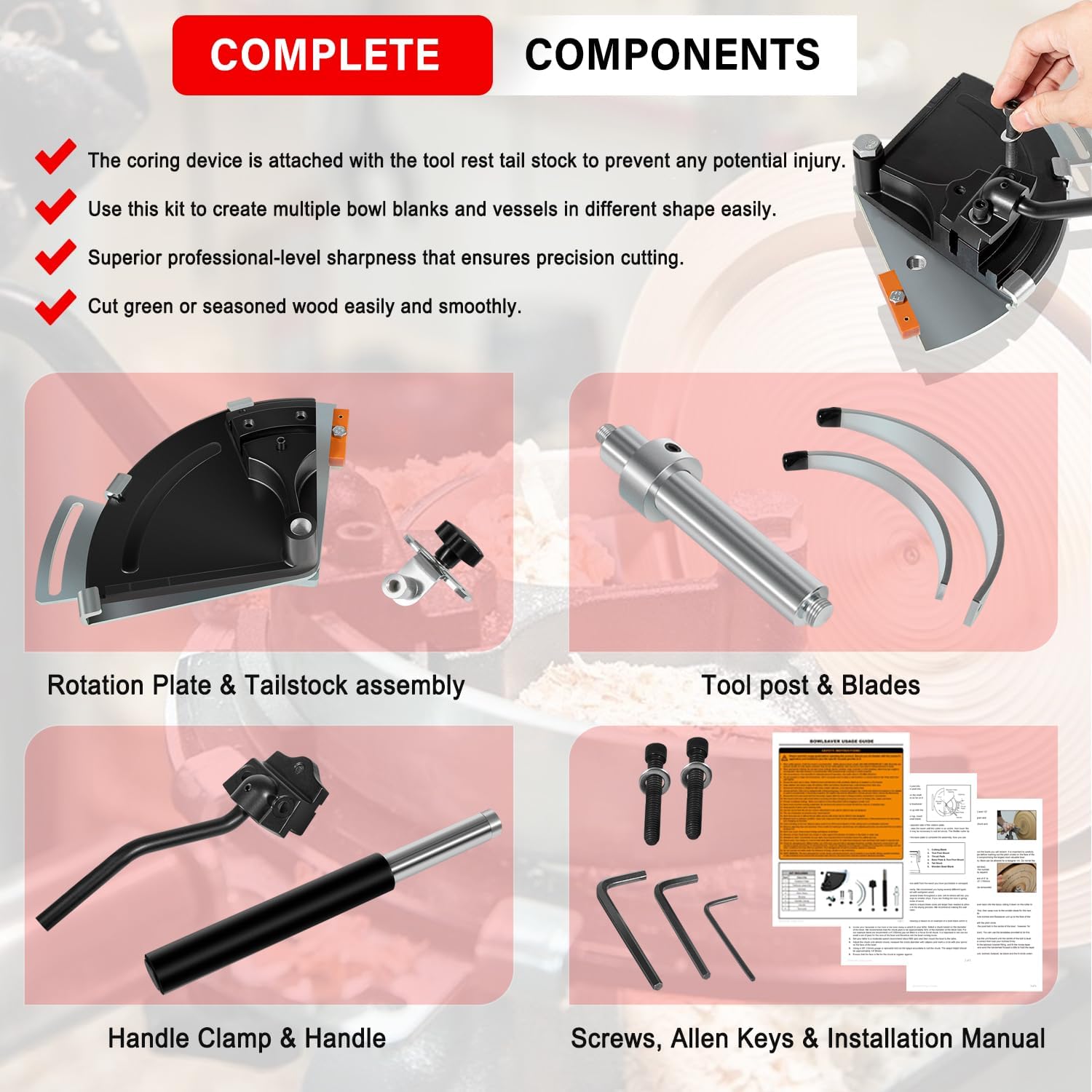 | Included Components | For Woodcut Bowlsaver Coring System with Two Blades |