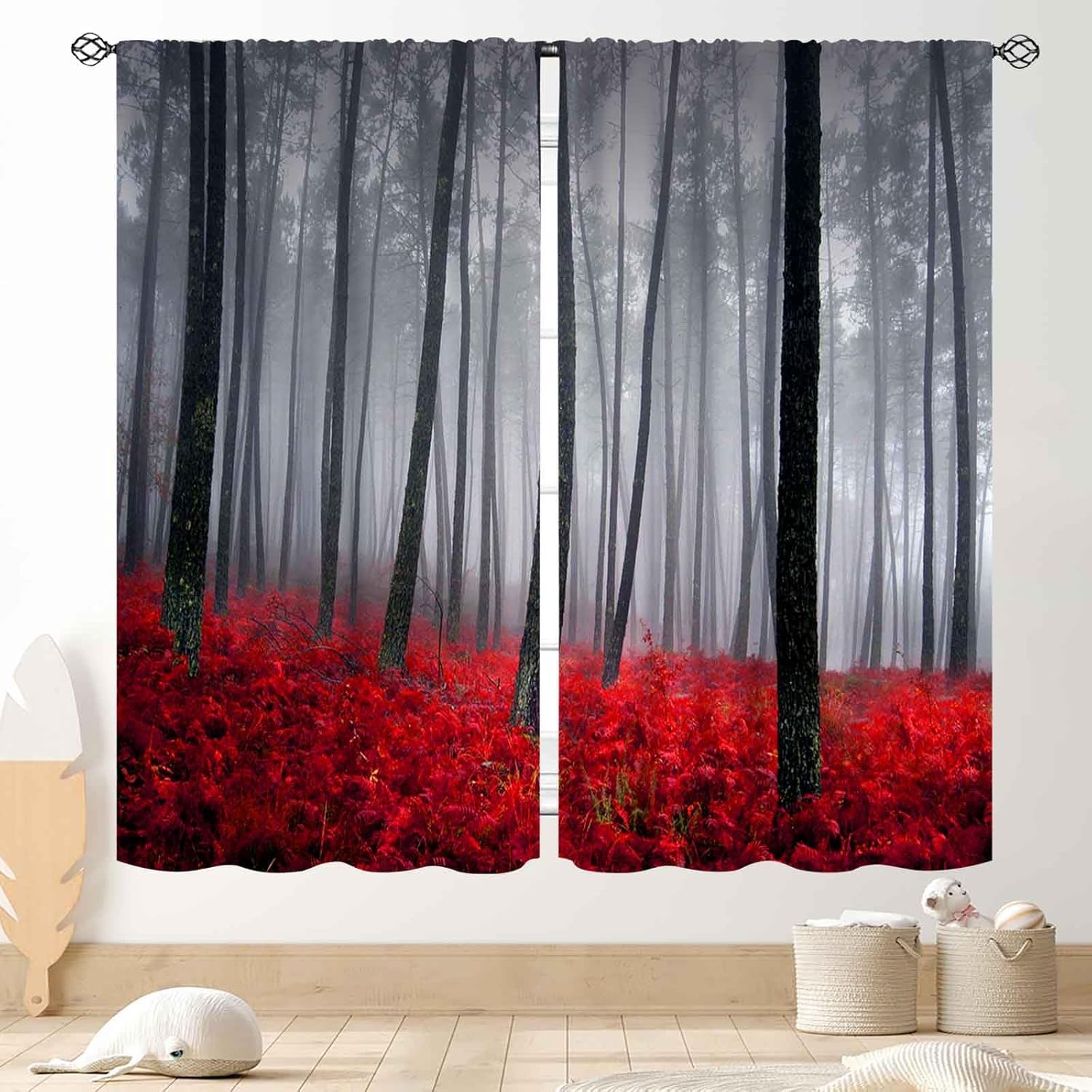 The forest green curtains selected from with quality fabric which are not easy to fade. The woodland curtain comes with cool personalized design, which can protect your privacy, beautify your room and increasing the sense of design. Unique Design: We have a professional design team, you can find your favorite products in TKUYO shop. Soft and blackout curtains are perfect for home decoration and enhance your life style. It also can be used as a gift for halloween, christmas, new year, birthday, wedding,valentine's day, father's day, mother's day. Machine washable: Easy to care for and safe to machine wash in cold water, do not bleach. Warm iron and tumble dry at low temperatures.