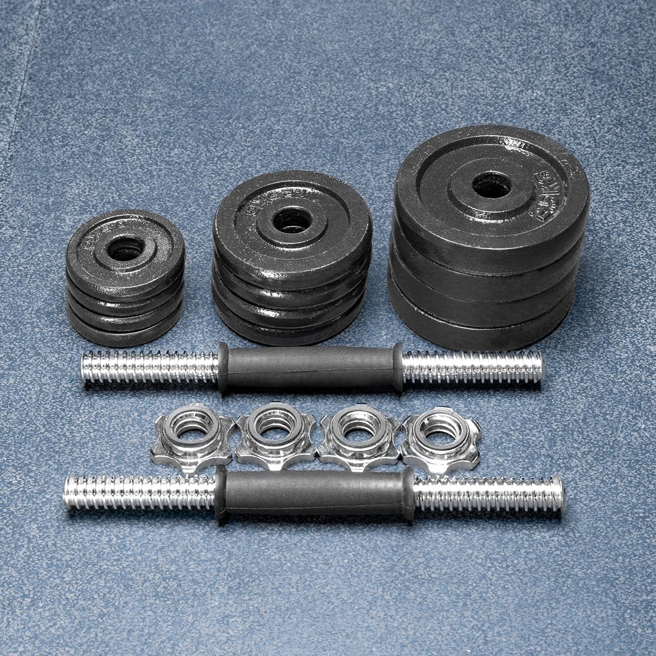 SpecificationsWhat You Get:4x 2.5kg (5.5lbs) weight plates4x 1.25kg (2.8lbs) weight plates4x 0.5kg (1.1lbs) weight plates2x 1kg (2.2lbs) dumbbell handles4x spinlock collars1x carry caseDimensions:Package Size: 45cm x 28cm x 15cm | 18in x 11in x 6inPackage Weight: 21kg | 46lbsMaterials:Durable solid metal bars/handlesBlack powder coated cast iron weight platesMiscellaneous:Ideal option for home workouts & garage gymsPerfect for chest, arm & leg exercises including curls, rows, squats & morePair of dumbbells – Ability to work both sides of the body independentlySupplied with a carry case for simple transportation & storageAdditional Safety Information:When lifting weights always seek professional advice to ensure the correct techniqueWe recommend when lifting weights to be accompanied for safety. ::contentReference[oaicite:0]{index=0}