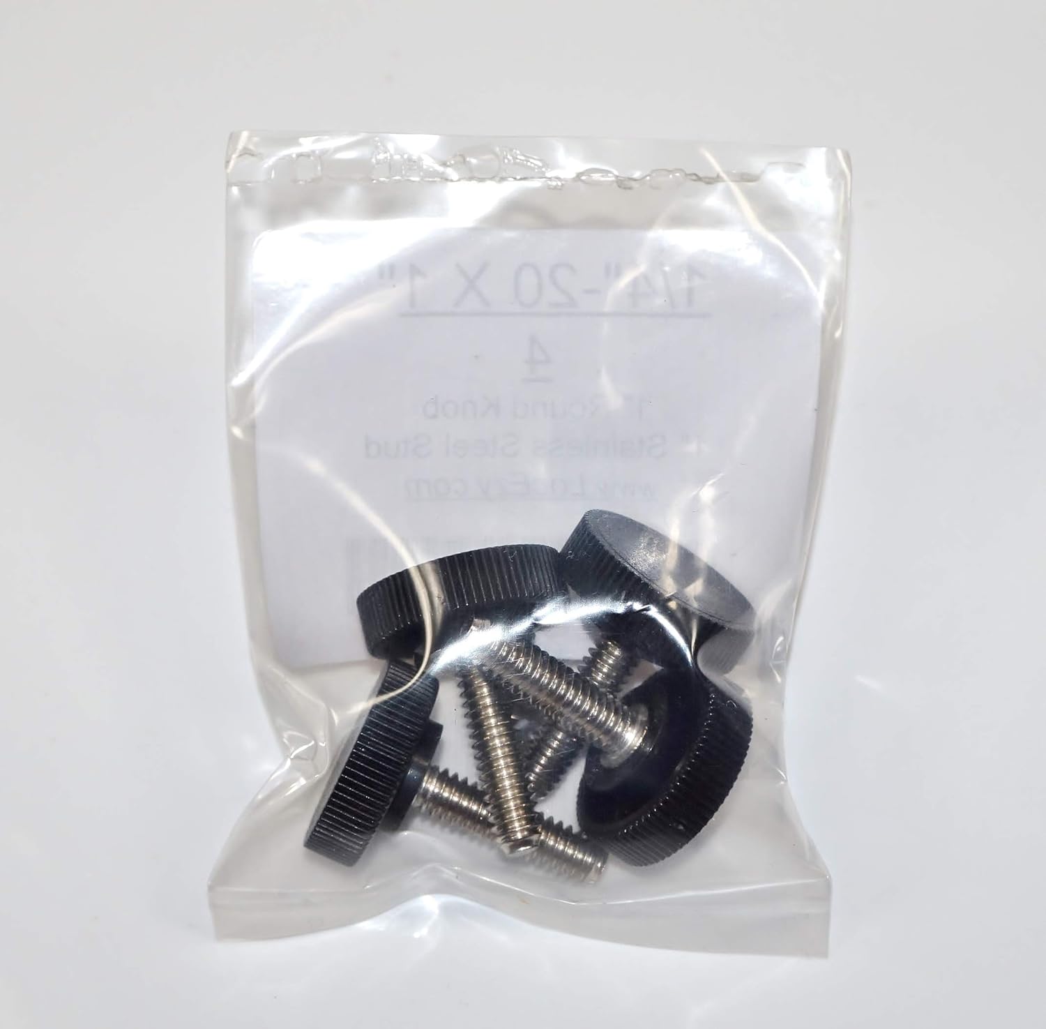 Package Quantity is 4pc’s. The Stainless Steel Threads are 1/4-20 x 1" in length. Fully threaded. Thumb Screws have a 1” Round Knob. The Knob is made of Delrin. Thread Material – Stainless Steel - anti-rust and anti-corrosion, strong and durable. These Thumb Screws come in many different lengths. If you don’t see what you need, inquire through the Amazon contact seller page and I will list your requirements if not already listed.