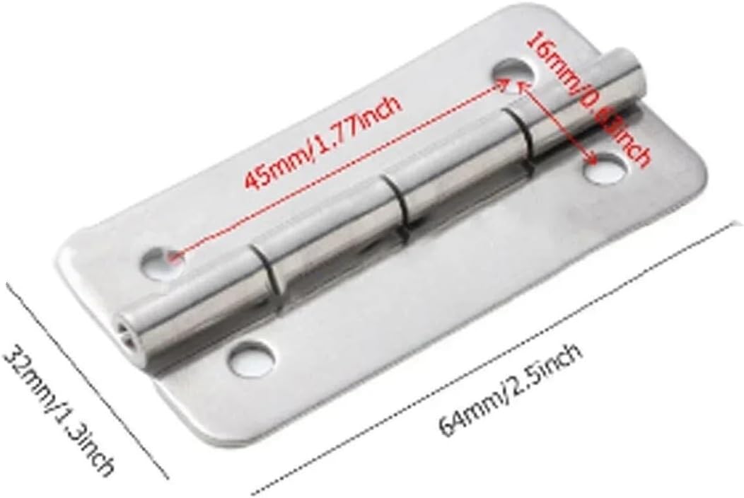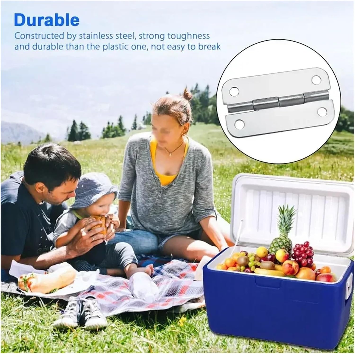 1. More convenient for daily use; the door can be gently pulled back to close, keeping the cabinets neat and organized.2. Scratch-resistant, adding a touch of design to any cabinet in the kitchen, bathroom, or home.3. Each hinge comes with mounting screws, providing everything you need for quick and easy installation.Specifications:Name:Cooler HingesMaterial:Stainless SteelSize:6*3.3cm/2.4*1.3inColor:SilverDescription :Sturdy Stainless Steel Our cooler hinges replacement is made of the strongest stainless steel, very to ensure a long life, more than plastic, more flexible.Package list:3pcs cooler hinges12pcs screws