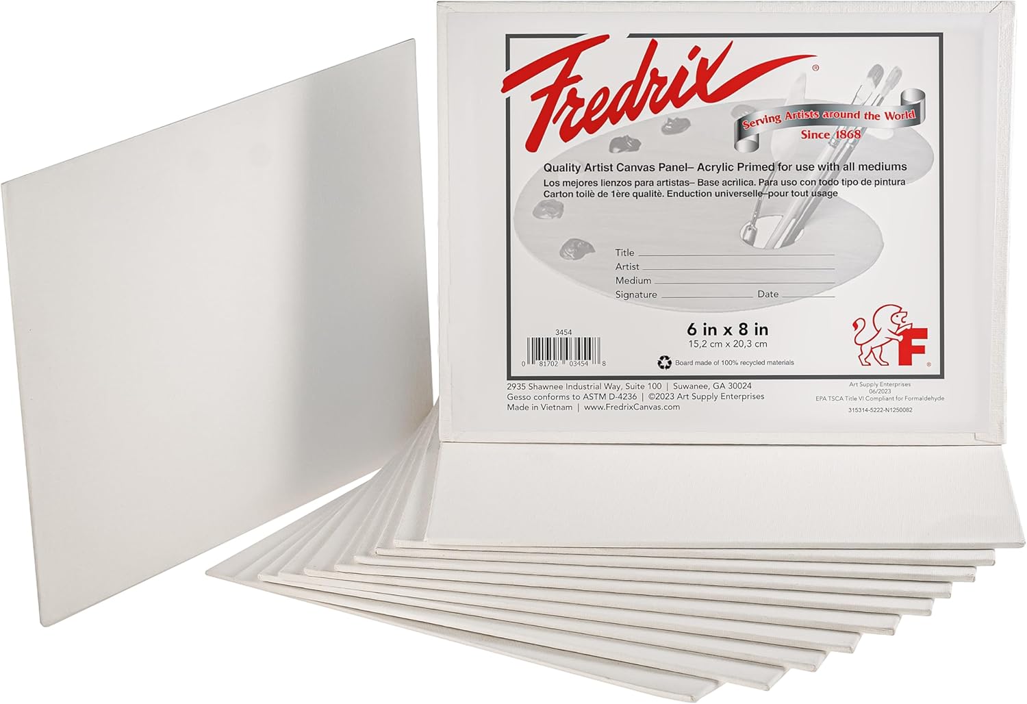 FREDRIX Artist Series Primed Canvas Panels, 8" x 10", Pack of 12